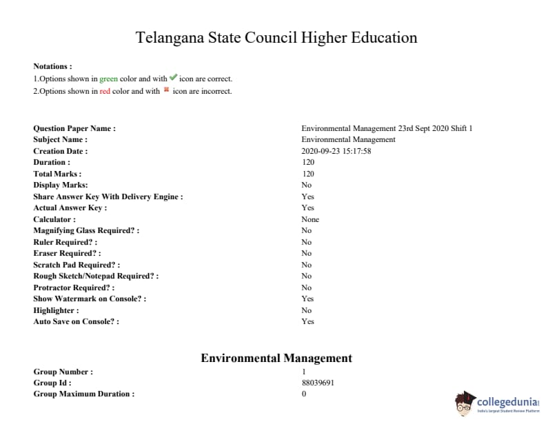 | TS PGECET 2020 Environmental Management Question Paper | TS PGECET 2020 Environmental Management Answer Key |
