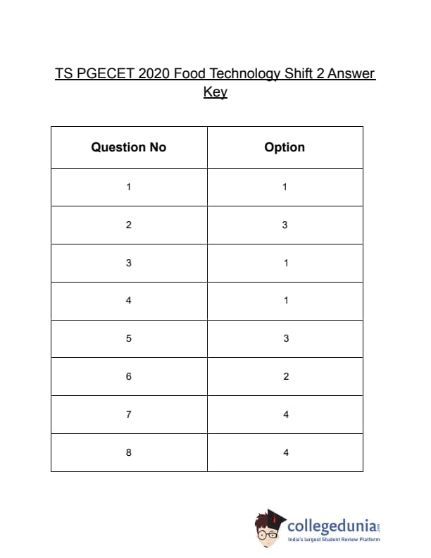 | TS PGECET 2020 Food Technology Question Paper | TS PGECET 2020 Food Technology Answer Key |