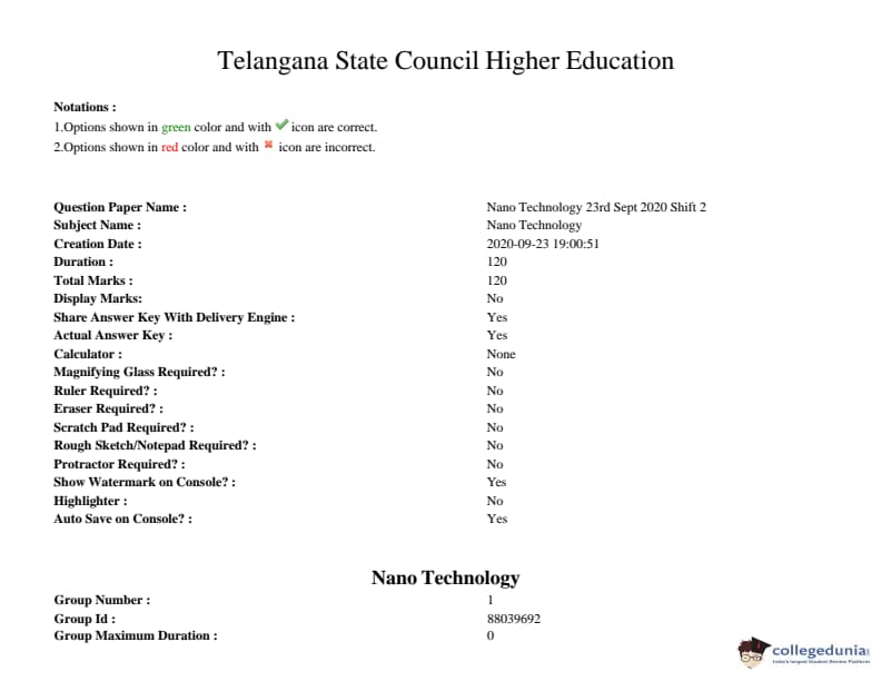 | TS PGECET 2020 Nano Technology Question Paper | TS PGECET 2020 Nano Technology Answer Key |