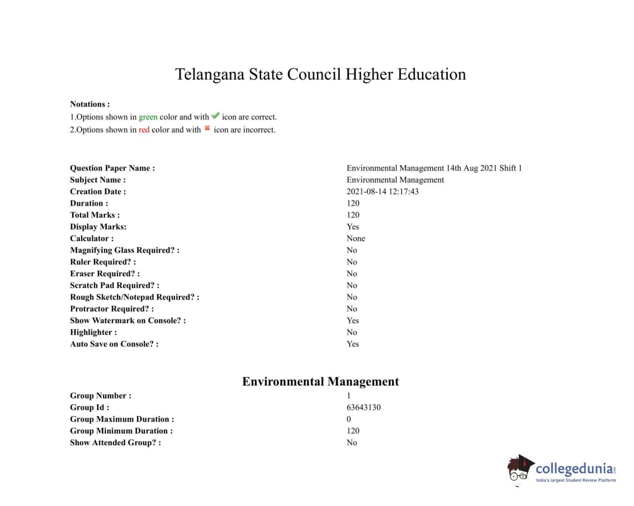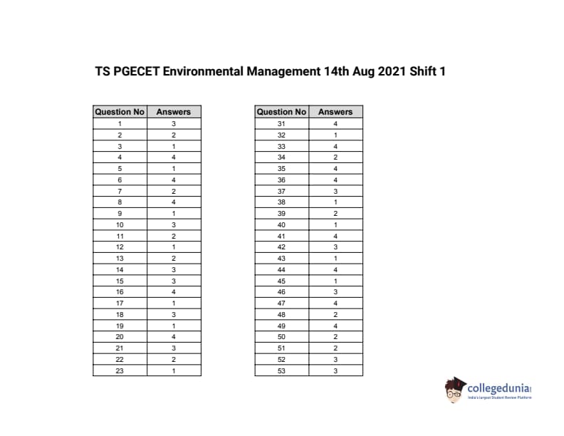 | TS PGECET 2021 Environmental Management Question Paper | TS PGECET 2021 Environmental Management Answer Key |
