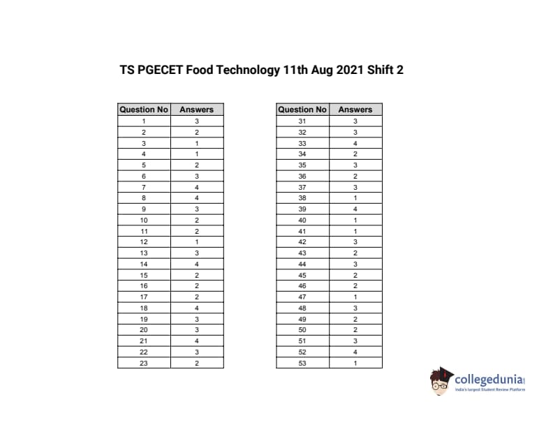 | TS PGECET 2021 Food Technology Question Paper | TS PGECET 2021 Food Technology Answer Key |