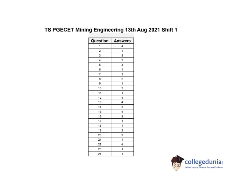 | TS PGECET 2021 Mining Engineering Question Paper | TS PGECET 2021 Mining Engineering Answer Key |