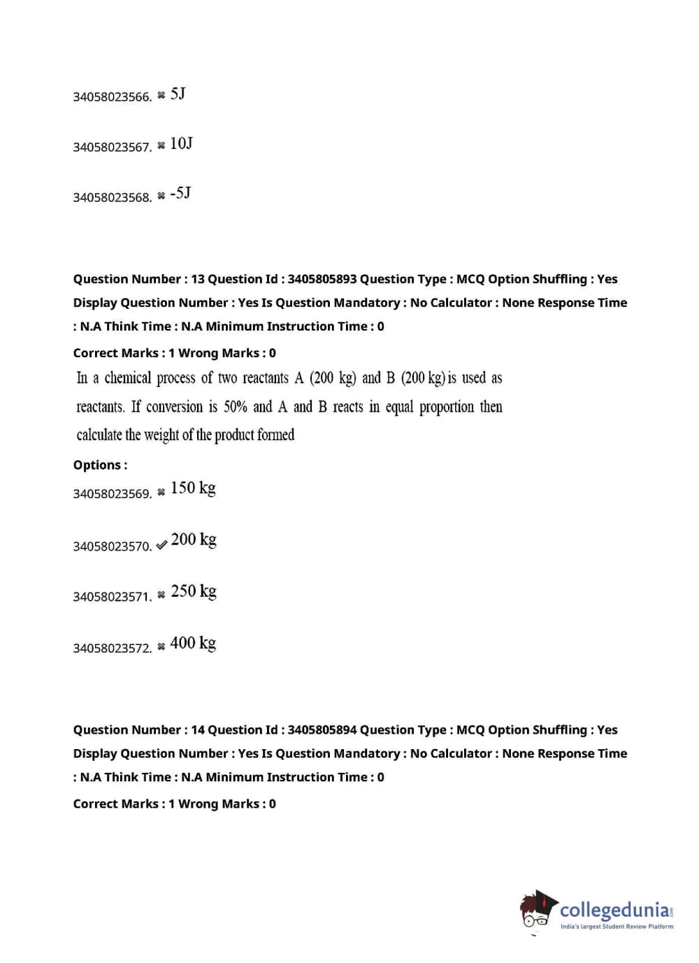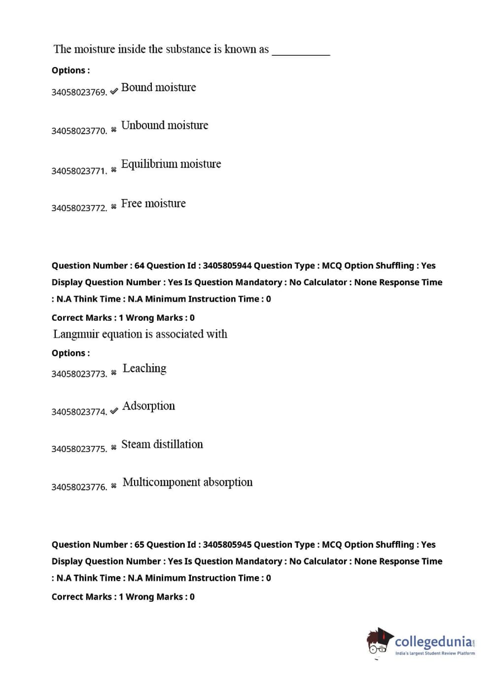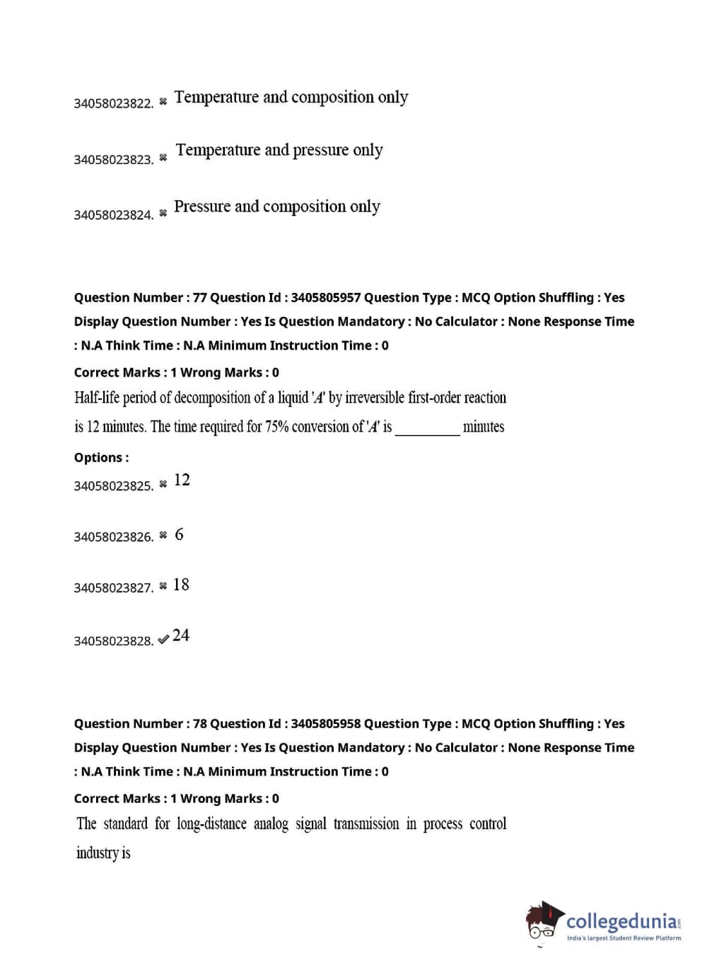 TS PGECET 2022 Chemical Engineering Question Paper with Answer Key PDFs Shift 1