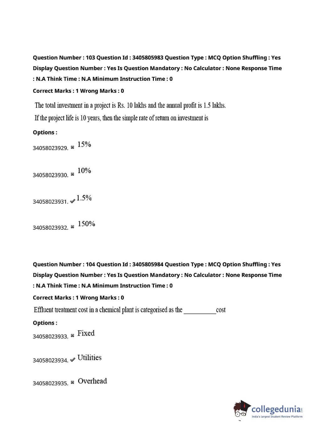 Collegedunia has provided TS PGECET Previous Year Question paper pdf with answer key in the links given below: