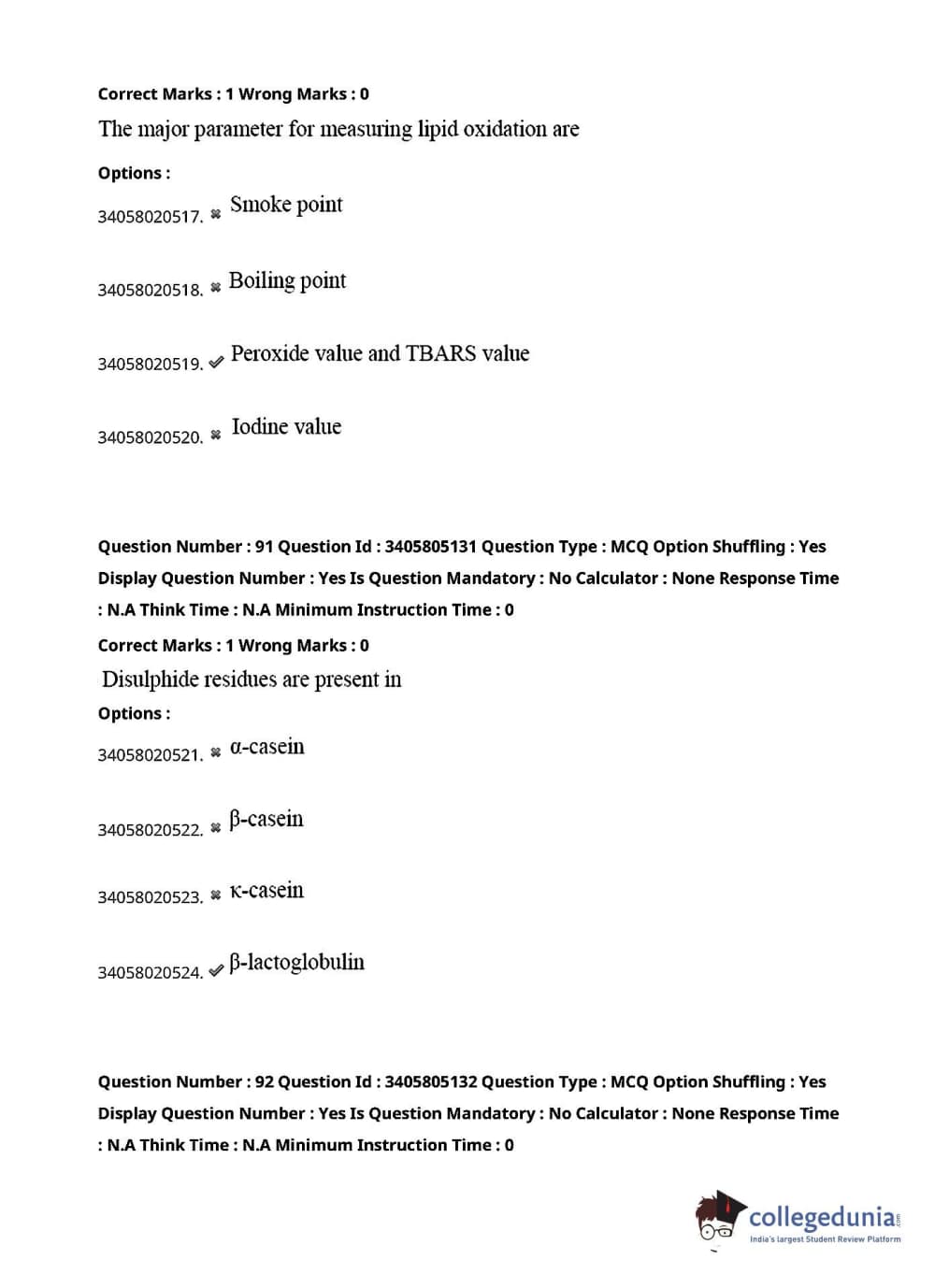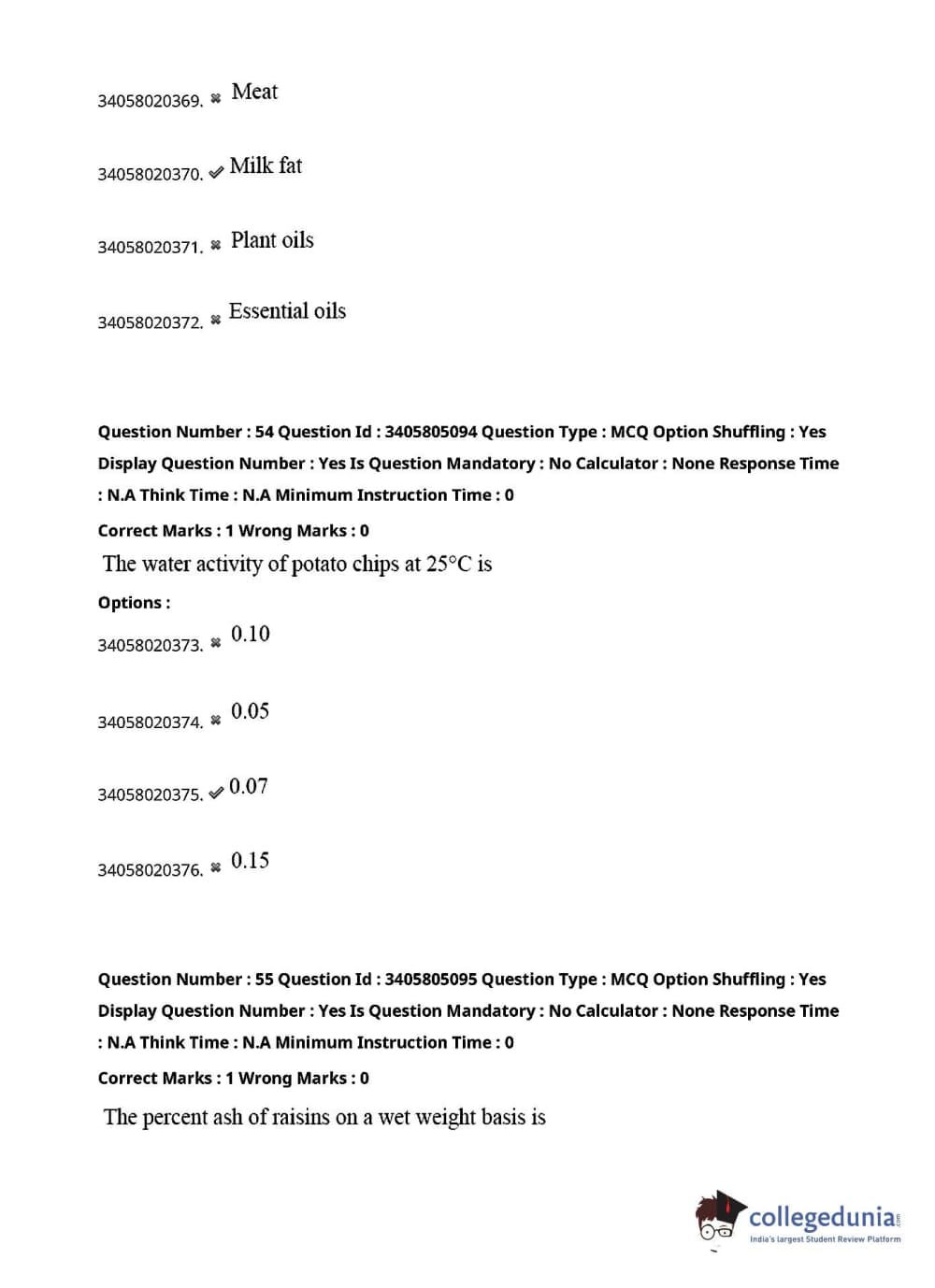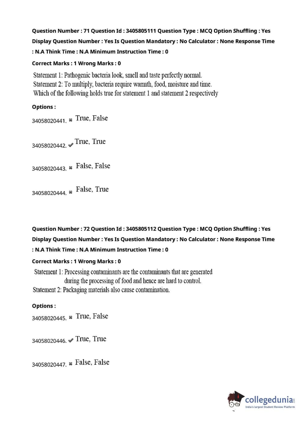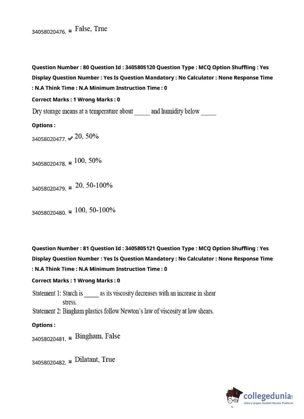 TS PGECET 2022 Food Technology Question Paper with Answer Key PDFs Shift 2