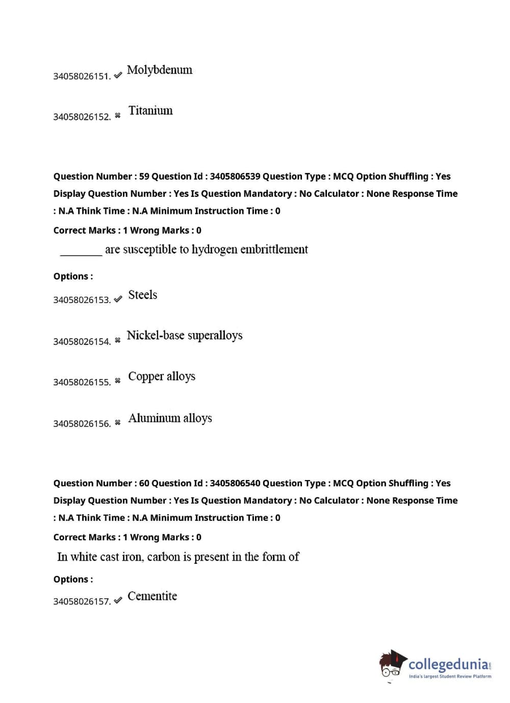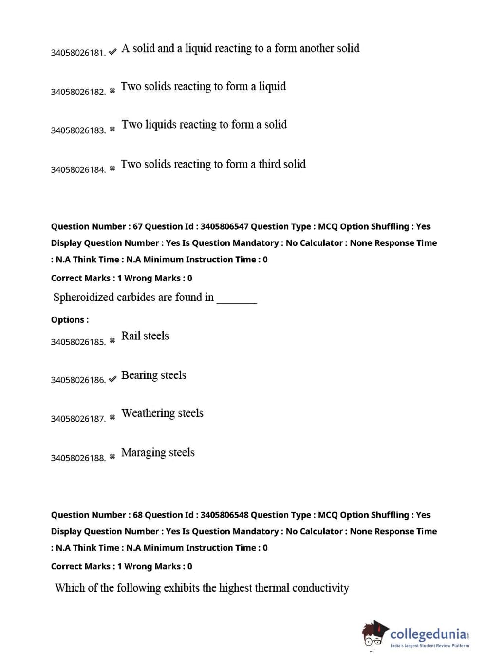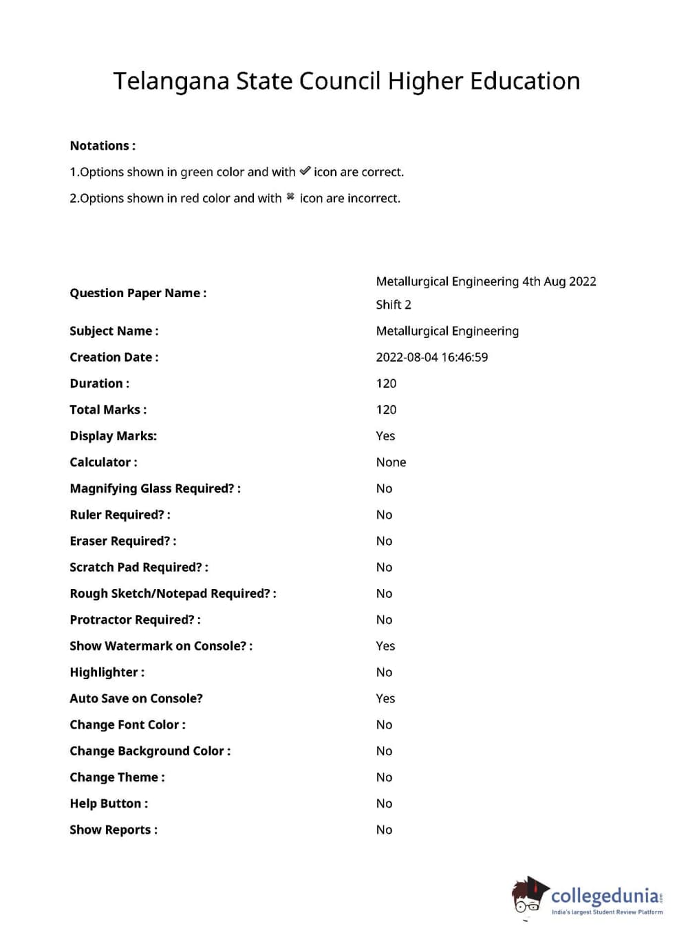 TS PGECET 2022 Metallurgical Engineering Question Paper with Answer Key PDFs Shift 2
