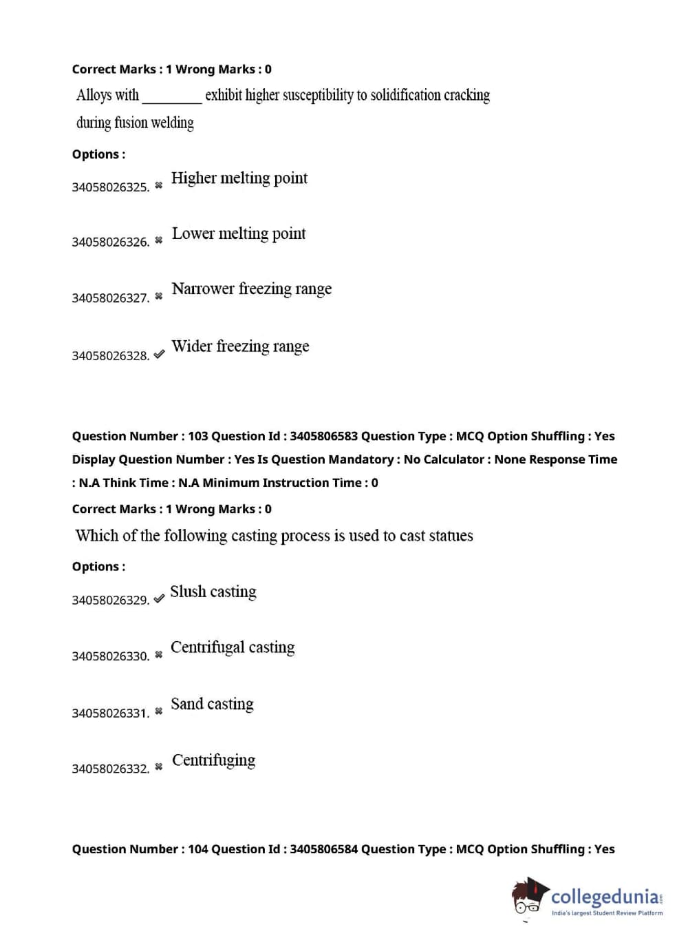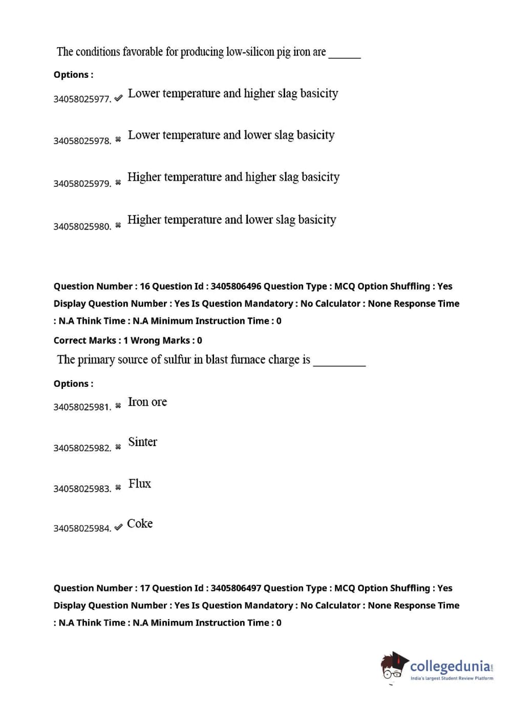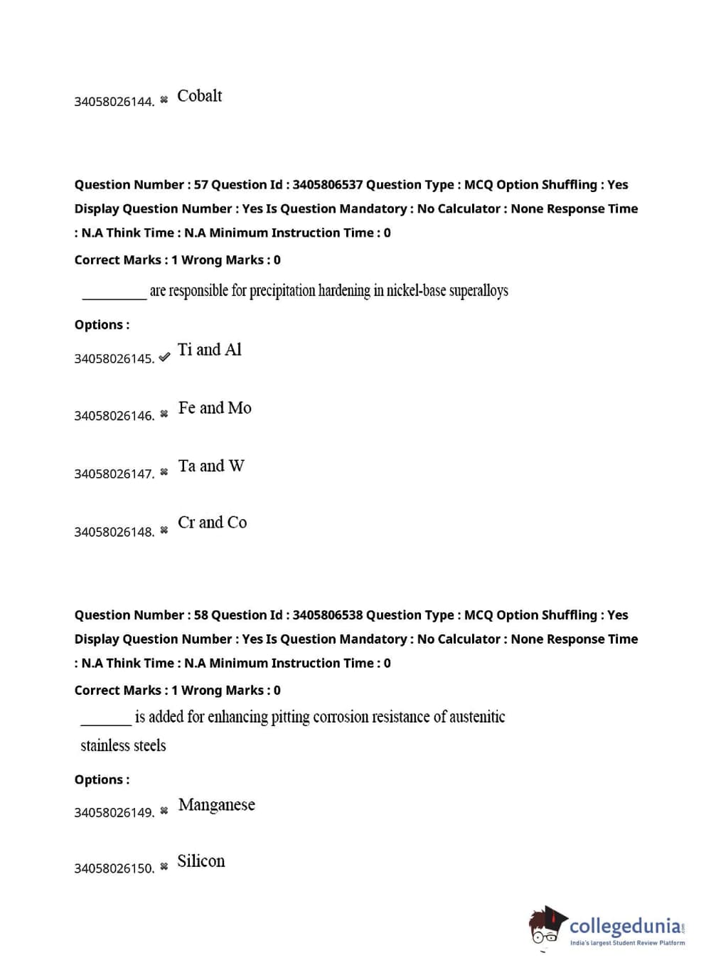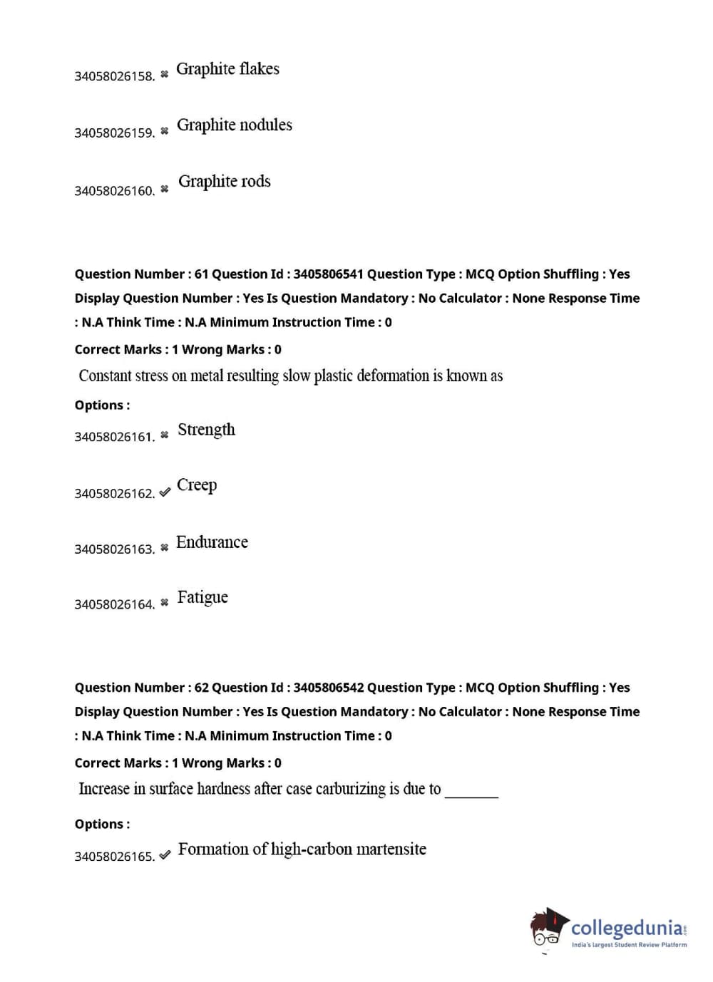 TS PGECET 2022 Metallurgical Engineering Question Paper with Answer Key PDFs Shift 2