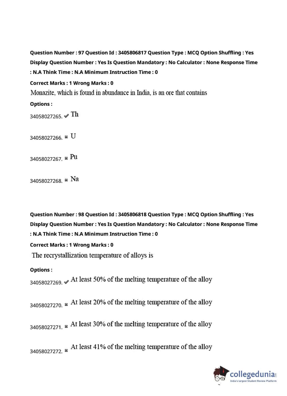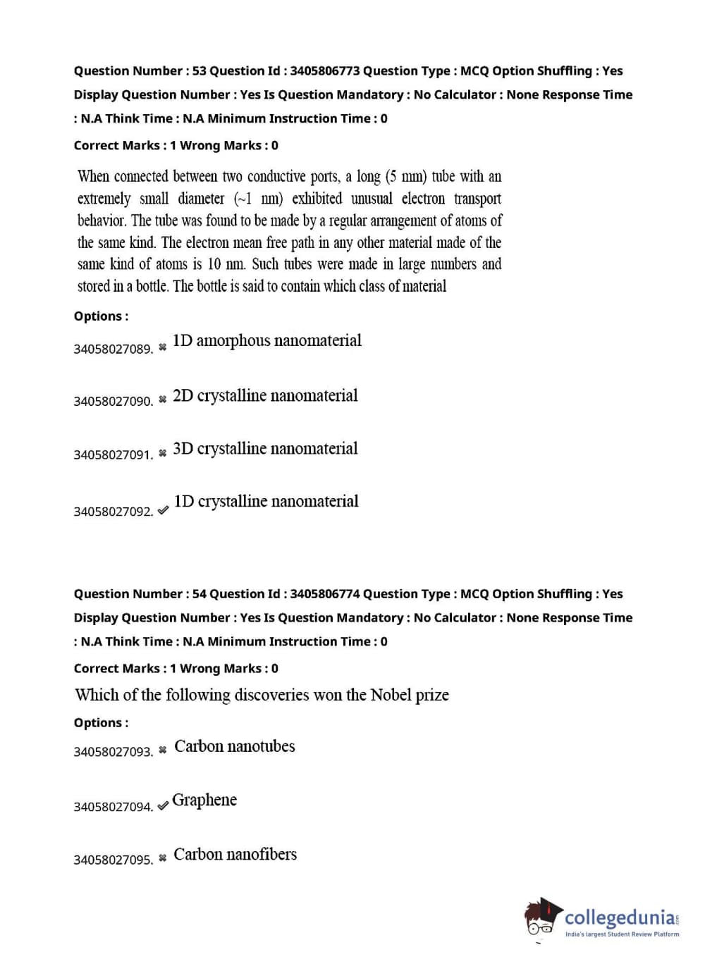 TS PGECET 2022 Nano Technology Question Paper with Answer Key PDFs Shift 2