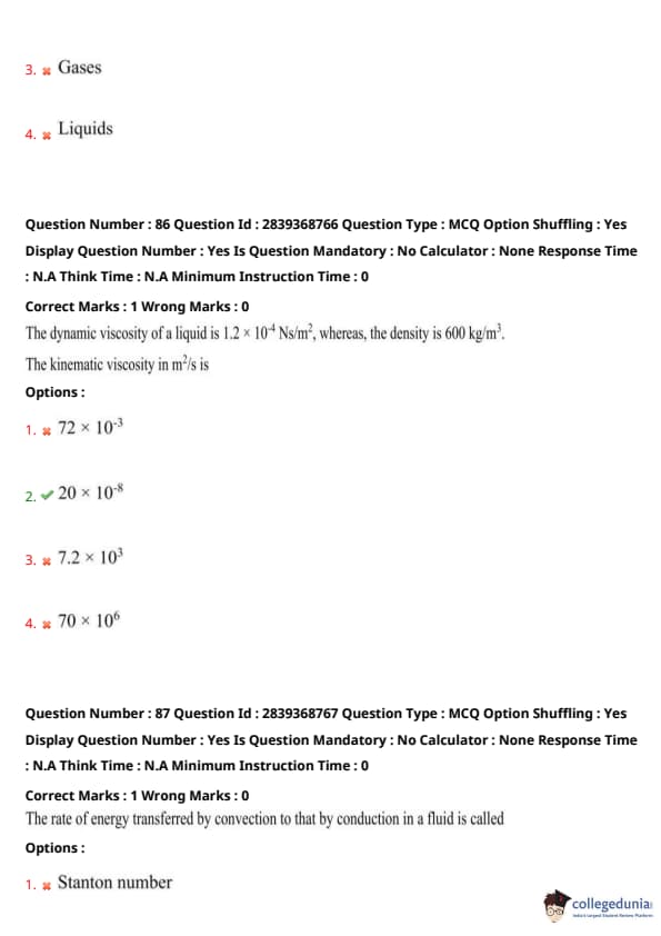 Step 2: This leads to greater momentum transfer in gases, hence viscosity increases. Quick Tip: For gases: Higher temperature means higher viscosity. For liquids, it's usually the opposite.