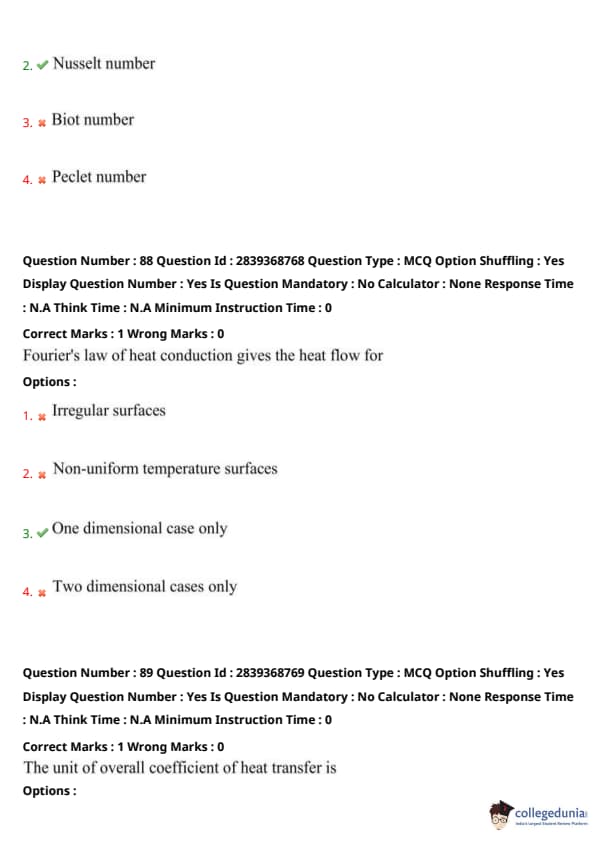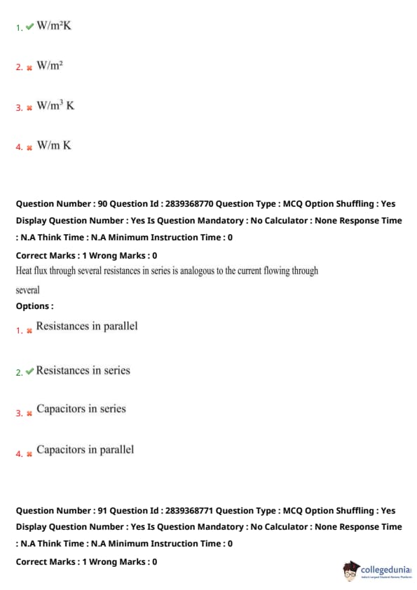 Step 2: Rearranging gives unit of \( U \) as \( \frac{Q}{A \Delta T} \Rightarrow W/m^2K \) Quick Tip: Always check the dimensions using the basic heat transfer formula \( Q = UA\Delta T \).