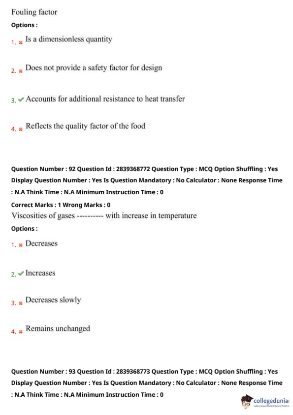 Step 2: It is used in design to ensure sufficient area and efficiency in heat exchangers. Quick Tip: Remember: Fouling factor = extra thermal resistance due to deposits on heat transfer surfaces.