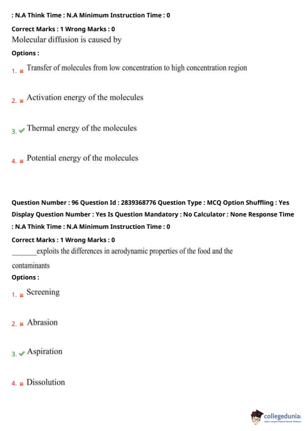 Step 2: Air flow carries away light particles (like husks or dust) while heavier food items fall due to gravity. Quick Tip: Aspiration is commonly used in grain cleaning processes to remove chaff and dust.
