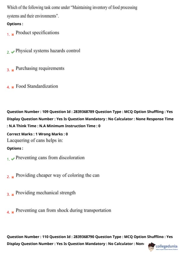 Step 1: Inventory management in food processing includes monitoring physical conditions and hazard controls.