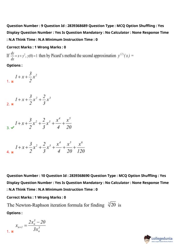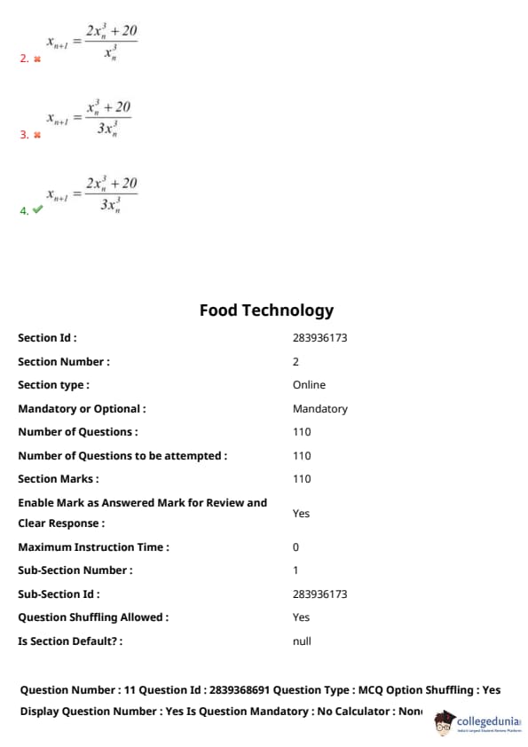 Step 5: This matches option (D). Quick Tip: For root-finding using Newton-Raphson, set \( f(x) = 0 \) and apply \( x_{n+1} = x_n - \frac{f(x_n)}{f'(x_n)} \). Use derivatives carefully.