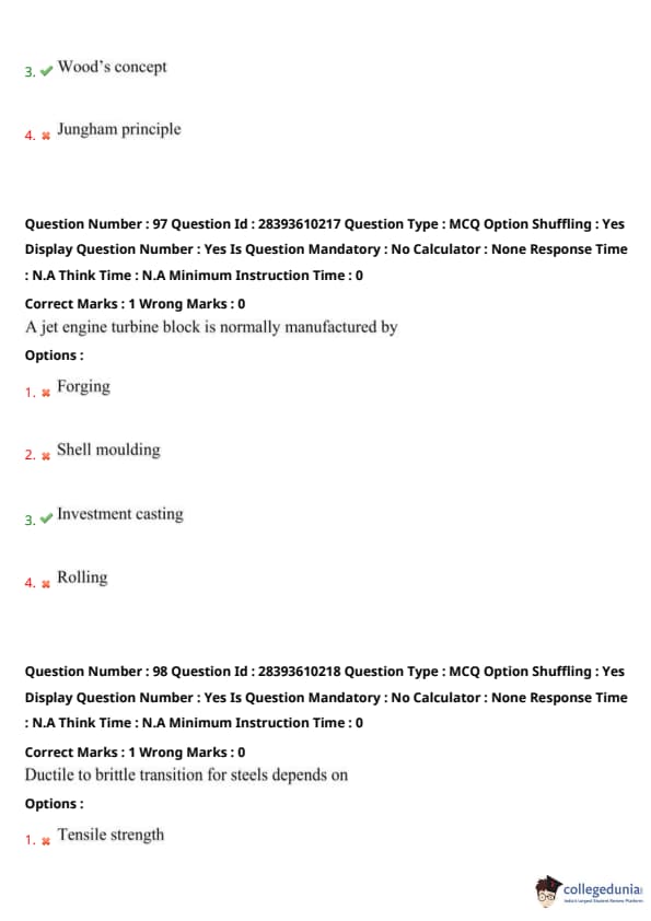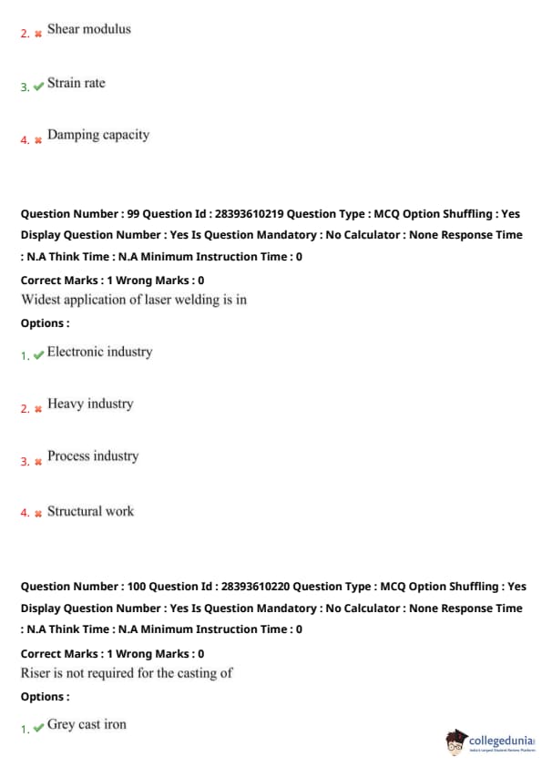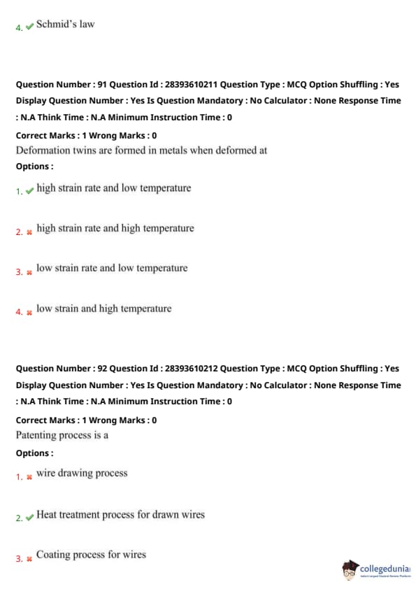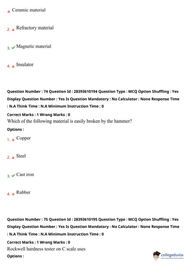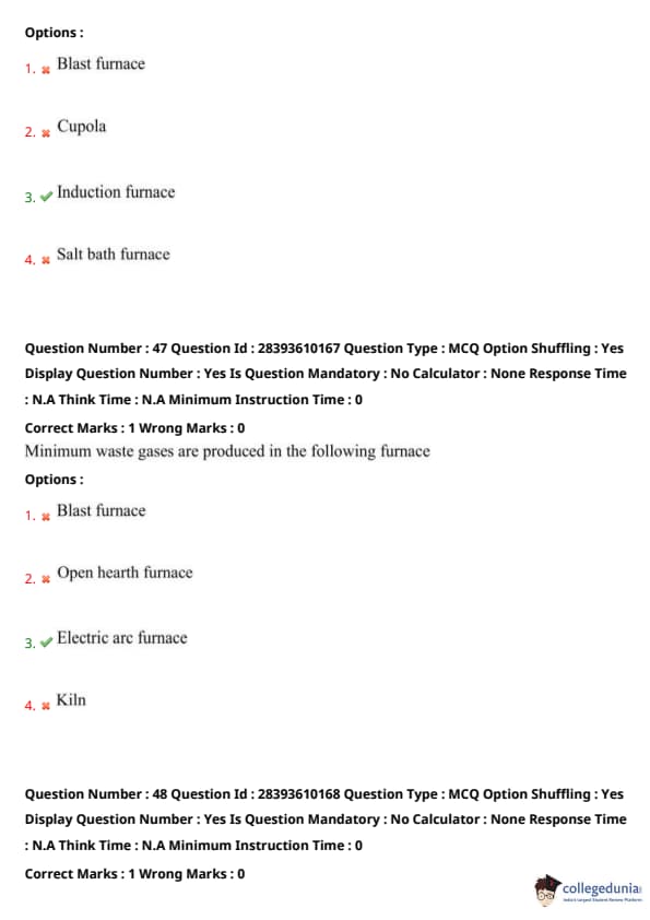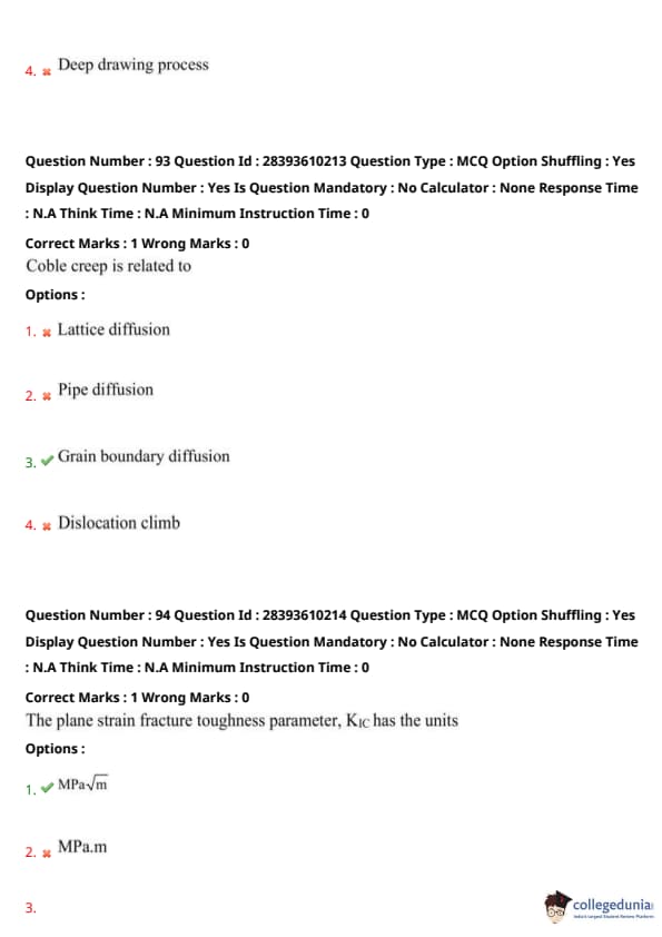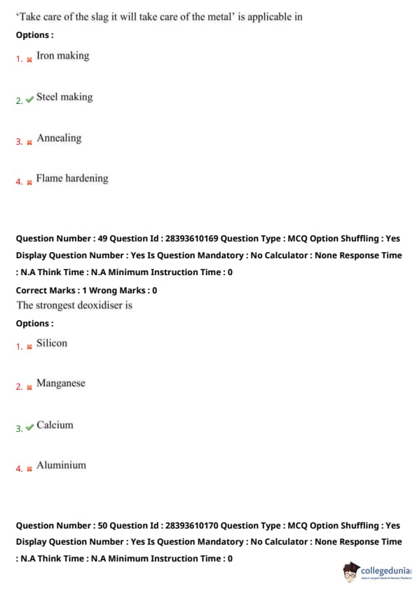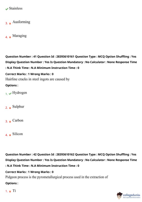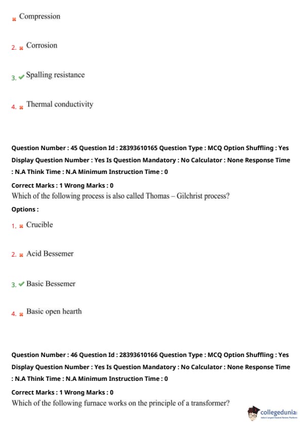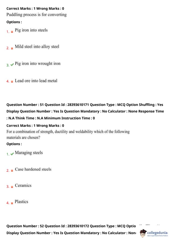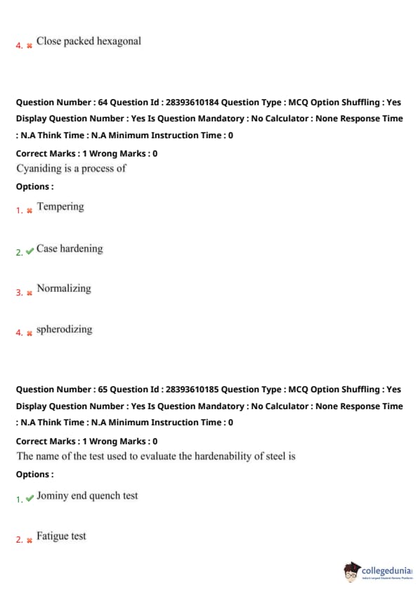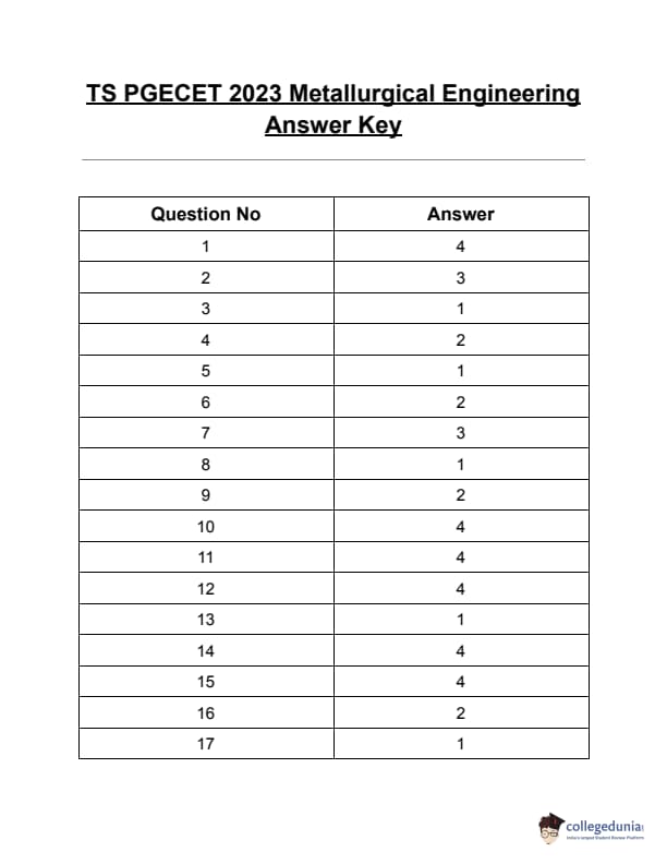 TS PGECET 2023 Metallurgical Engineering Question Paper with Answer key PDF is available here for download. TS PGECET 2023 was conducted by JNTU Hyderabad on behalf of TSCHE on May 31, 2023. TS PGECET 2023 MT Question Paper consisted of 120 questions carrying 1 mark for each.