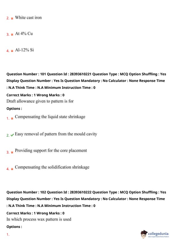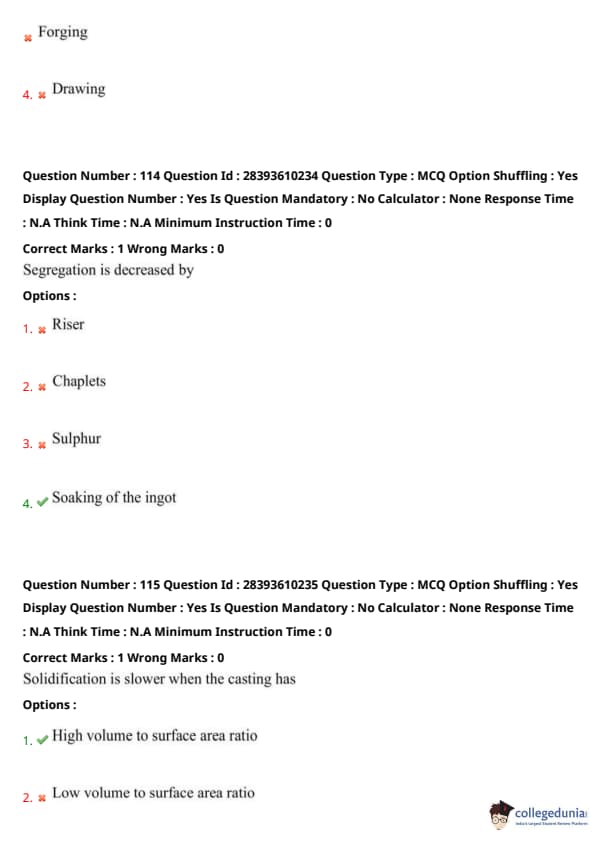 Thus, option (1) is correct. Quick Tip: High volume-to-surface area slows casting solidification.