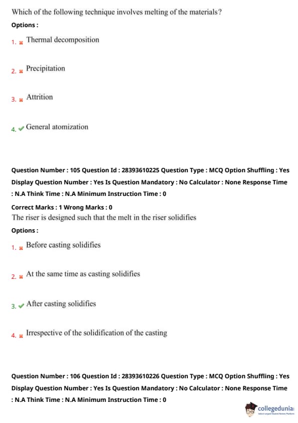 Thus, option (3) is correct. Quick Tip: Risers solidify after castings to feed shrinkage.