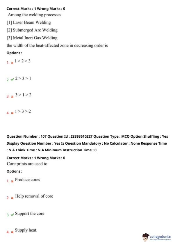 Thus, option (2) is correct. Quick Tip: HAZ width decreases with focused heat: SAW > MIG > LBW.