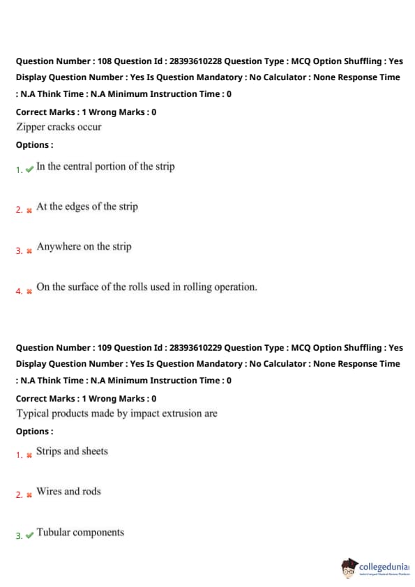 Thus, option (1) is correct. Quick Tip: Zipper cracks form centrally in continuously cast strips.
