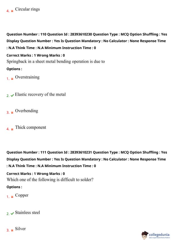 Thus, option (2) is correct. Quick Tip: Springback results from elastic recovery in sheet metal bending.
