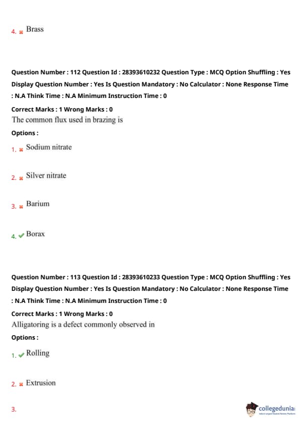 Thus, option (4) is correct. Quick Tip: Borax flux cleans surfaces for brazing filler flow.