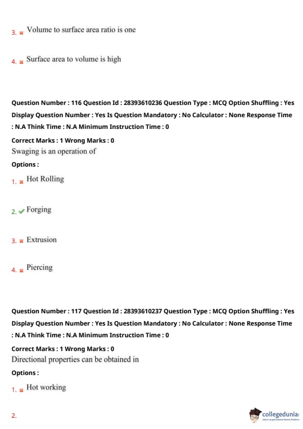 Thus, option (2) is correct. Quick Tip: Swaging forges reduced diameters in rods or tubes.