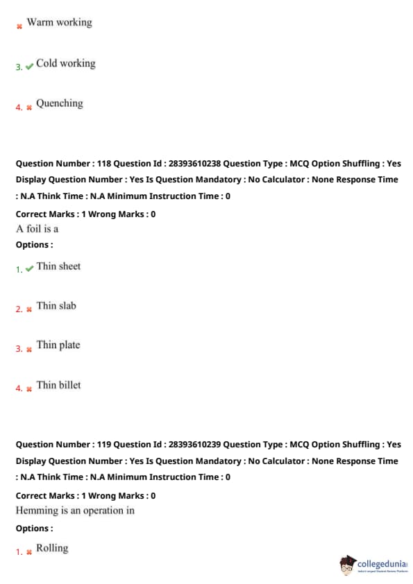 Thus, option (3) is correct. Quick Tip: Hemming folds sheet metal edges for strength and smoothness.