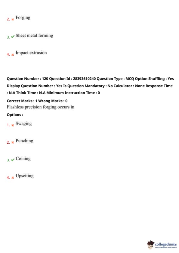 Thus, option (3) is correct. Quick Tip: Coining achieves flashless precision forging.