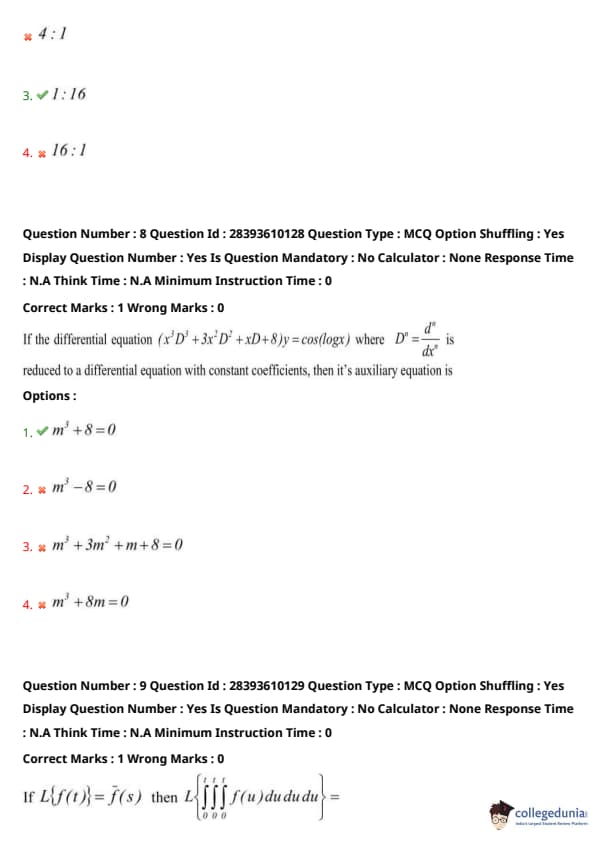 Other options do not match the simplified operator. Quick Tip: For Cauchy-Euler equations, use \(x = e^z\) to transform \(x^n \frac{d^n y}{dx^n}\) into \(D'(D'-1)\cdots(D'-n+1)y\). Simplify the resulting operator to find the constant-coefficient auxiliary equation.