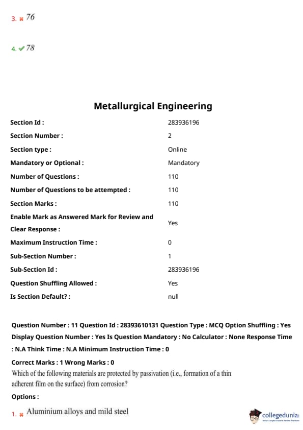 TS PGECET 2023 Metallurgical Engineering Question Paper