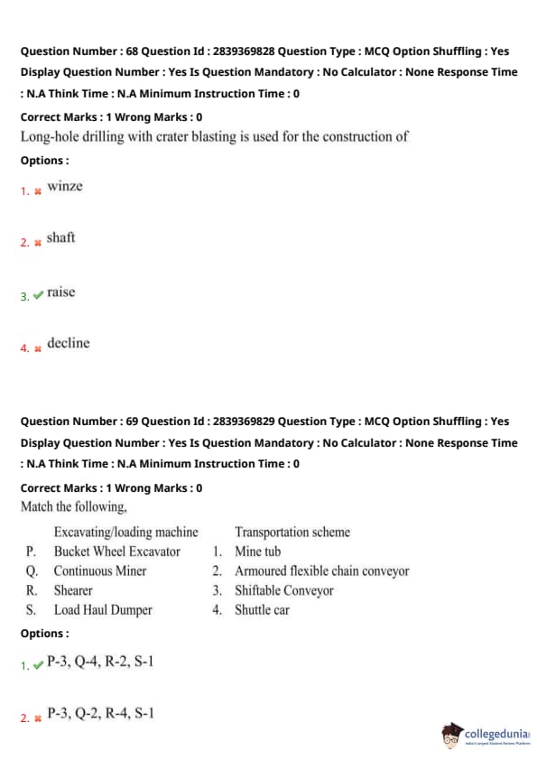 TS PGECET 2023 Mining Engineering Question Paper