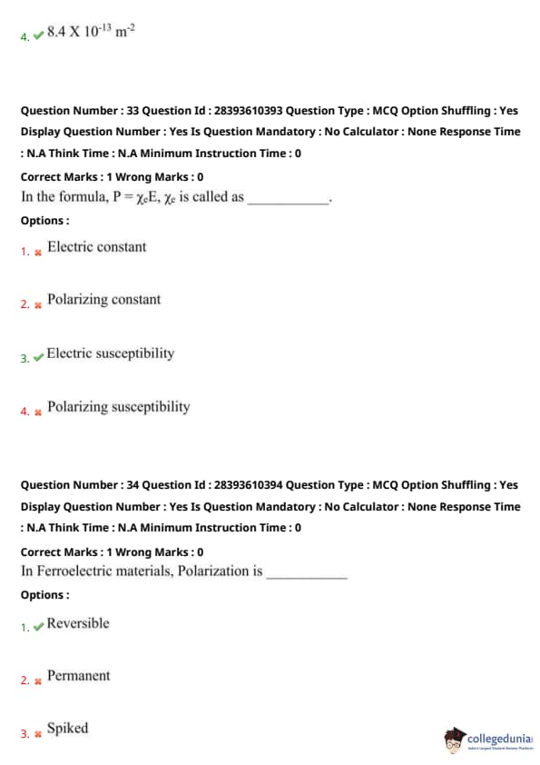 N/A Quick Tip: Electric susceptibility relates \(P\) and \(E\): \(P = \chi_e E\). It tells us how much the material gets polarized under an electric field.