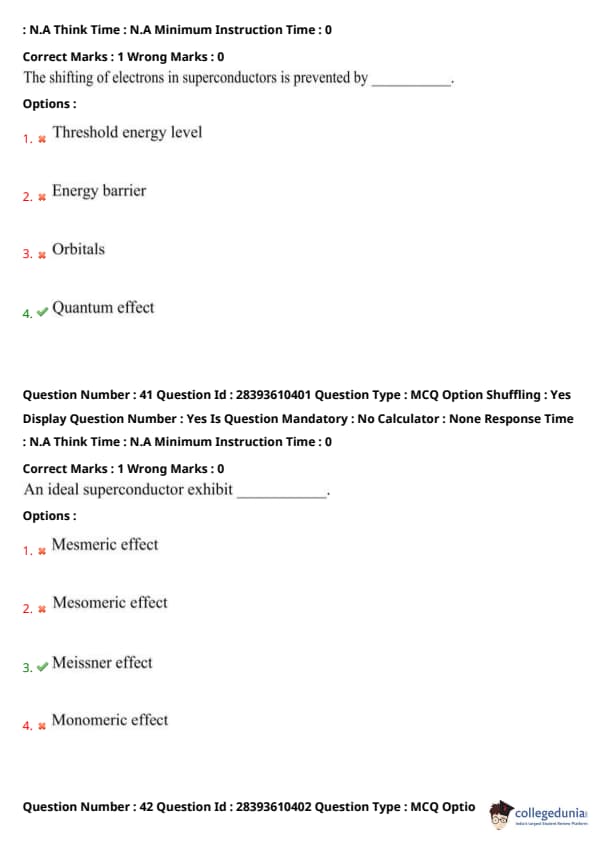 N/A Quick Tip: Superconductors = no magnetic entry = Meissner effect. Remember: total magnetic repulsion!