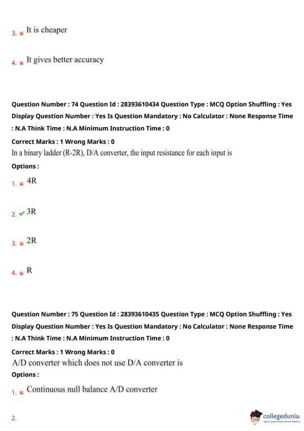 N/A Quick Tip: In an R-2R DAC, the input resistance seen at every bit input is constant and equals \(3R\), which simplifies circuit interfacing and improves linearity.
