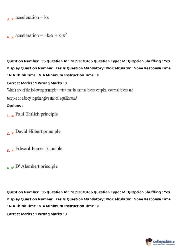 N/A Quick Tip: D'Alembert's principle helps in solving problems involving dynamics and statics, where both inertial forces and external forces are at play.