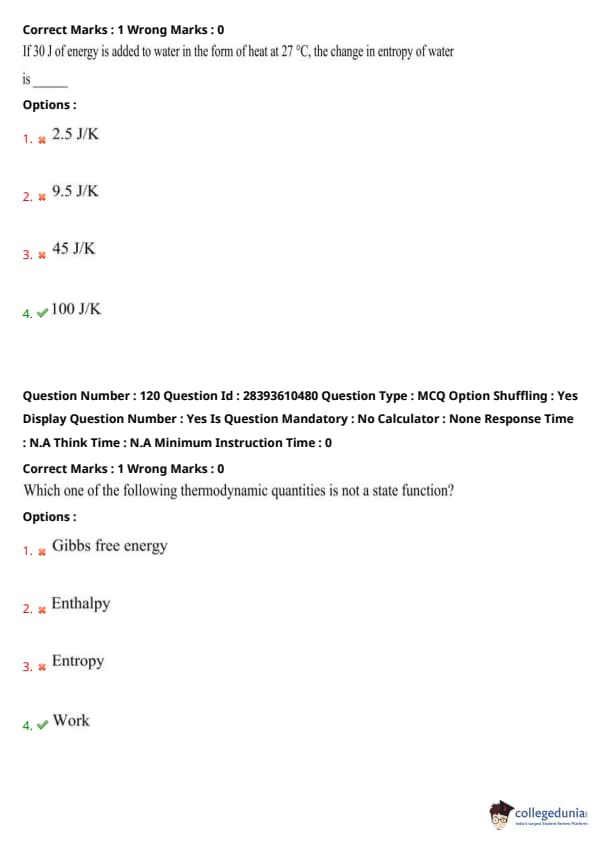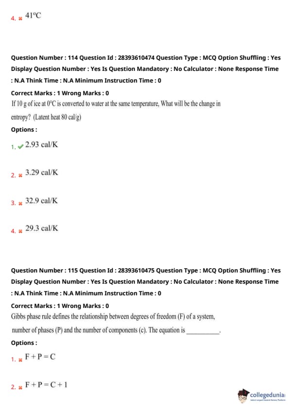 N/A Quick Tip: Entropy change during phase change = heat absorbed ÷ temperature (in Kelvin).