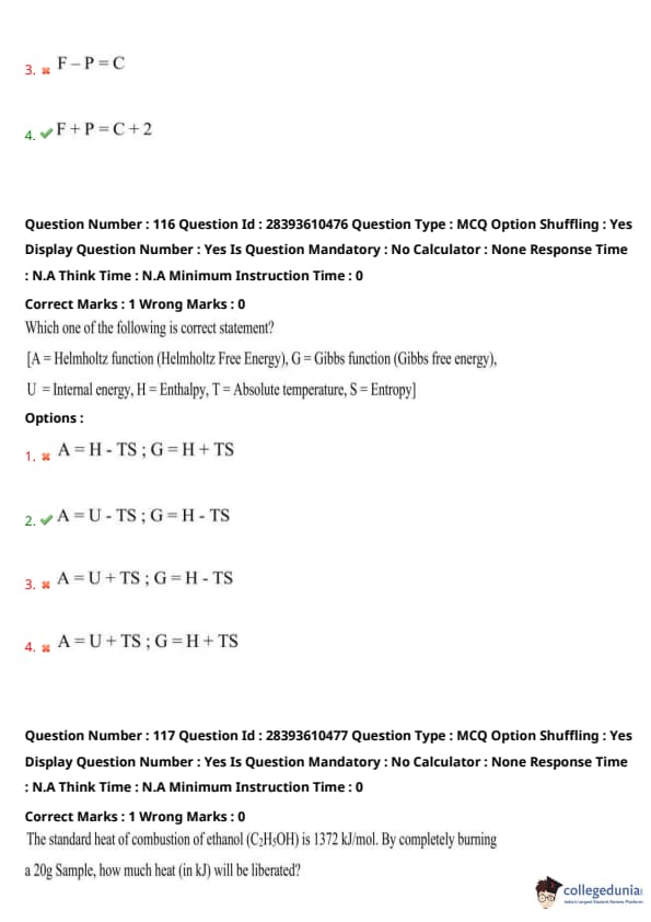 [A = Helmholtz function (Helmholtz Free Energy), G = Gibbs function (Gibbs free energy),