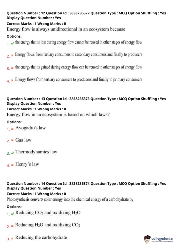- (d) Energy flows from tertiary consumers to producers and finally to primary consumers