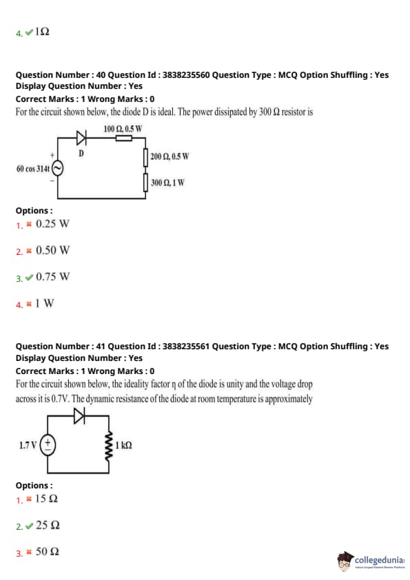 In the circuit shown, the ideality factor \( \eta \) of the diode is unity and the voltage drop across it is 0.7 V. The dynamic resistance of the diode at room temperature is approximately: