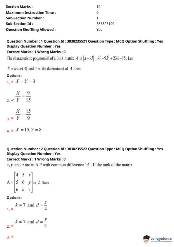 The characteristic polynomial of a \(3 \times 3\) matrix \( A \) is \[ |A - \lambda I| = \lambda^3 - 9\lambda^2 + 23\lambda - 15. \]