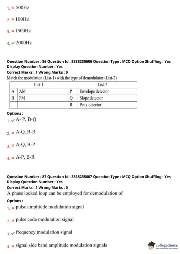 Match the modulation (List-1) with the type of demodulator (List-2):