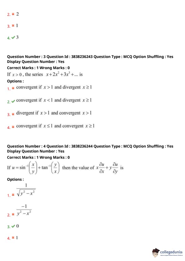 If \( u = \sin^{-1}\left(\frac{x}{y}\right) + \tan^{-1}\left(\frac{y}{x}\right) \), then the value of \( x \frac{\partial u}{\partial x} + y \frac{\partial u}{\partial y} \) is: