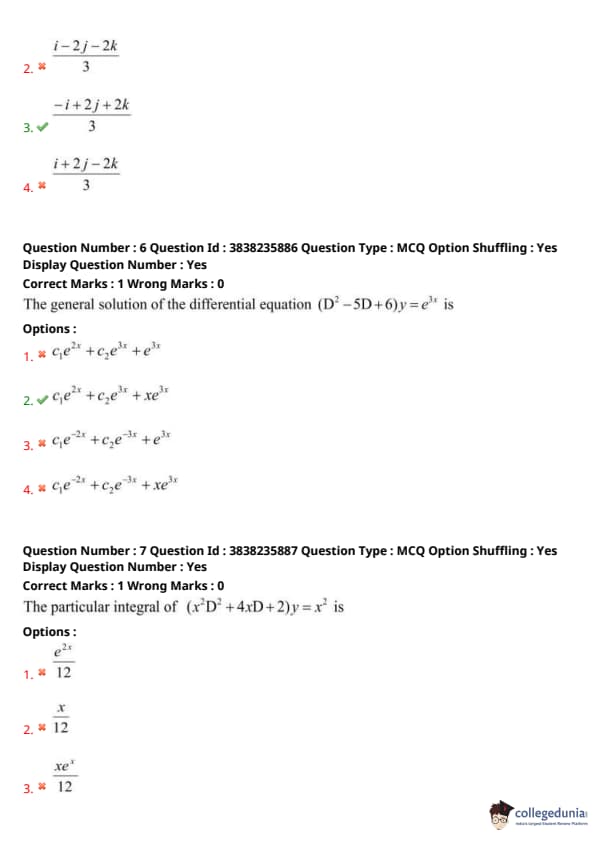 Particular integral for RHS \( e^{3x} \) since \( e^{3x} \) is solution of homogeneous equation, multiply by \( x \):