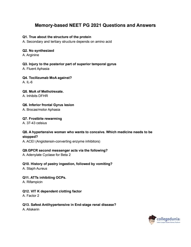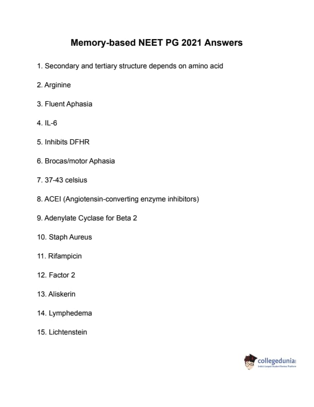 NEET PG 2021 Question Paper with Answer Key PDFs (Memory-based)