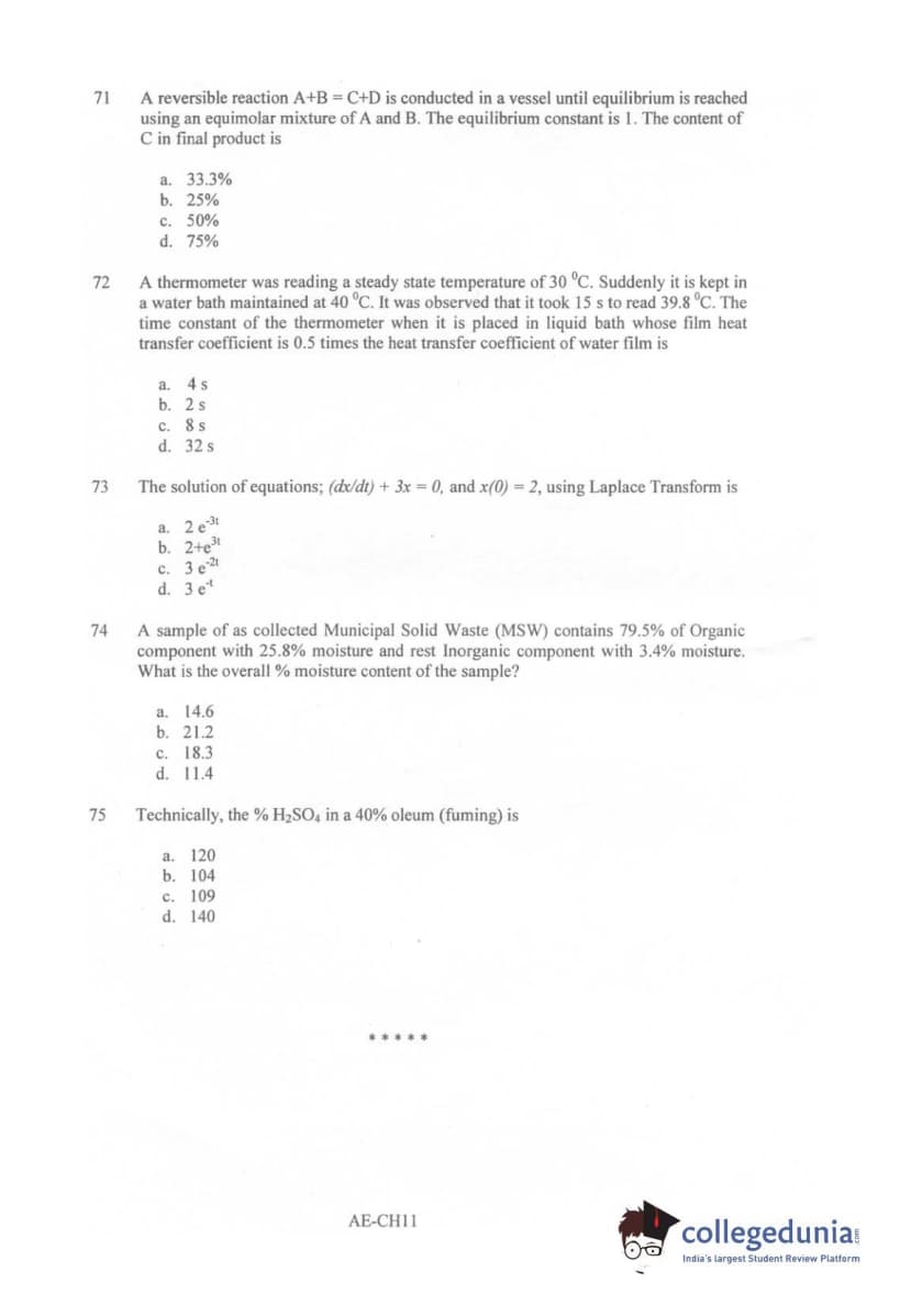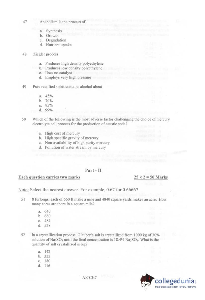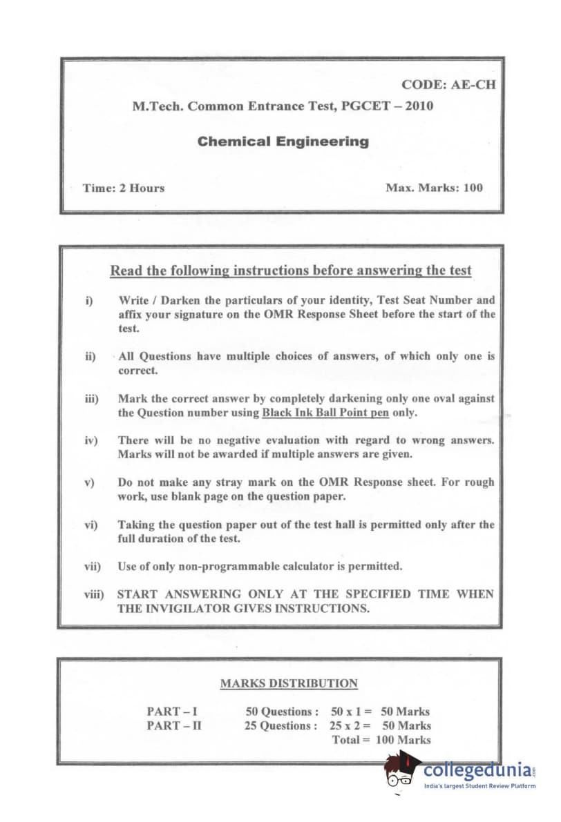 Karnataka PGCET 2010 Chemical Engineering Question paper with answer key pdf is available for download. The exam was successfully organized by Karnataka Examinations Authority (KEA). The question paper comprised a total of 75 questions.