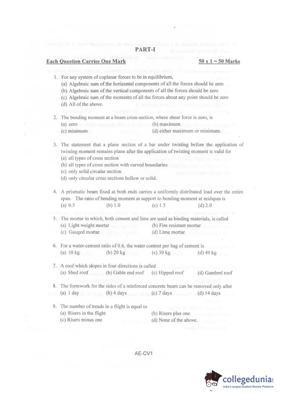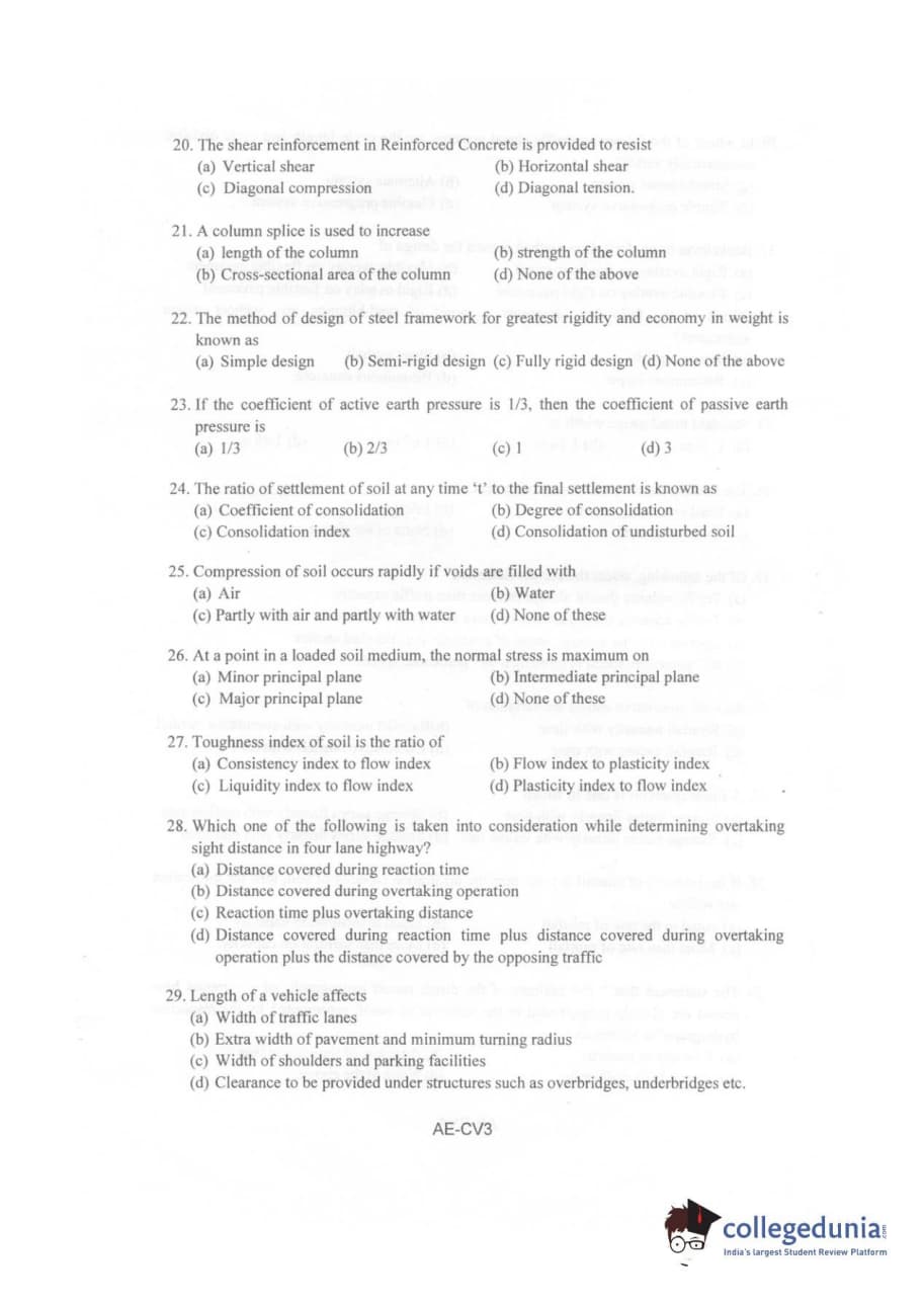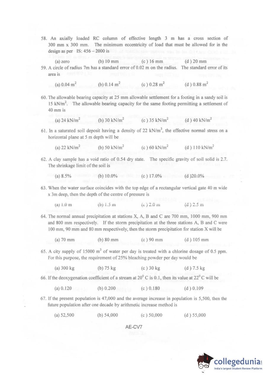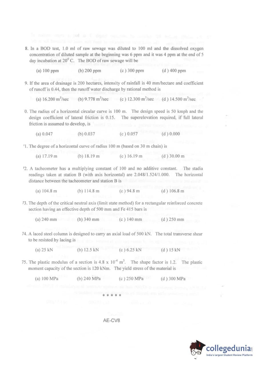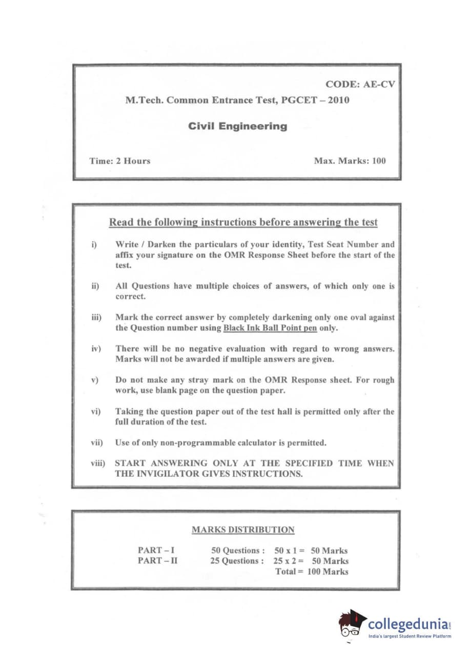 Karnataka PGCET 2010 Civil Engineering Question paper with answer key pdf is available for download. The exam was successfully organized by Karnataka Examinations Authority (KEA). The question paper comprised a total of 75 questions.