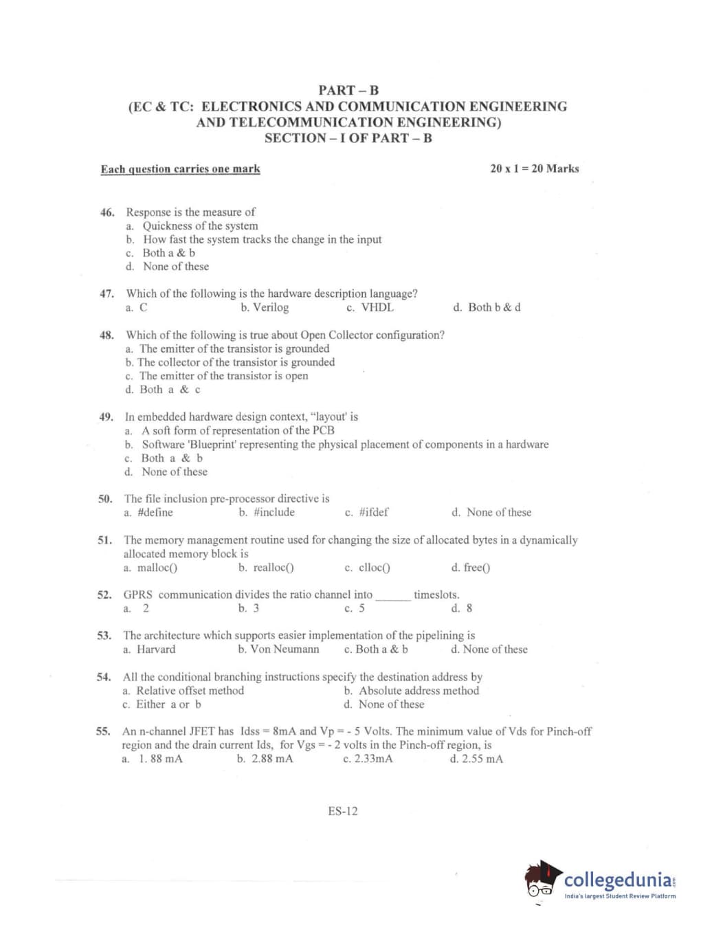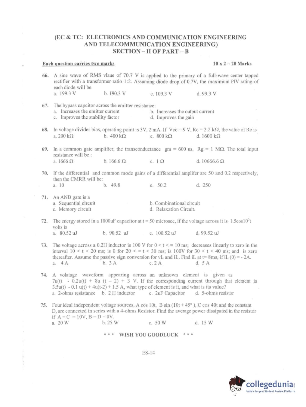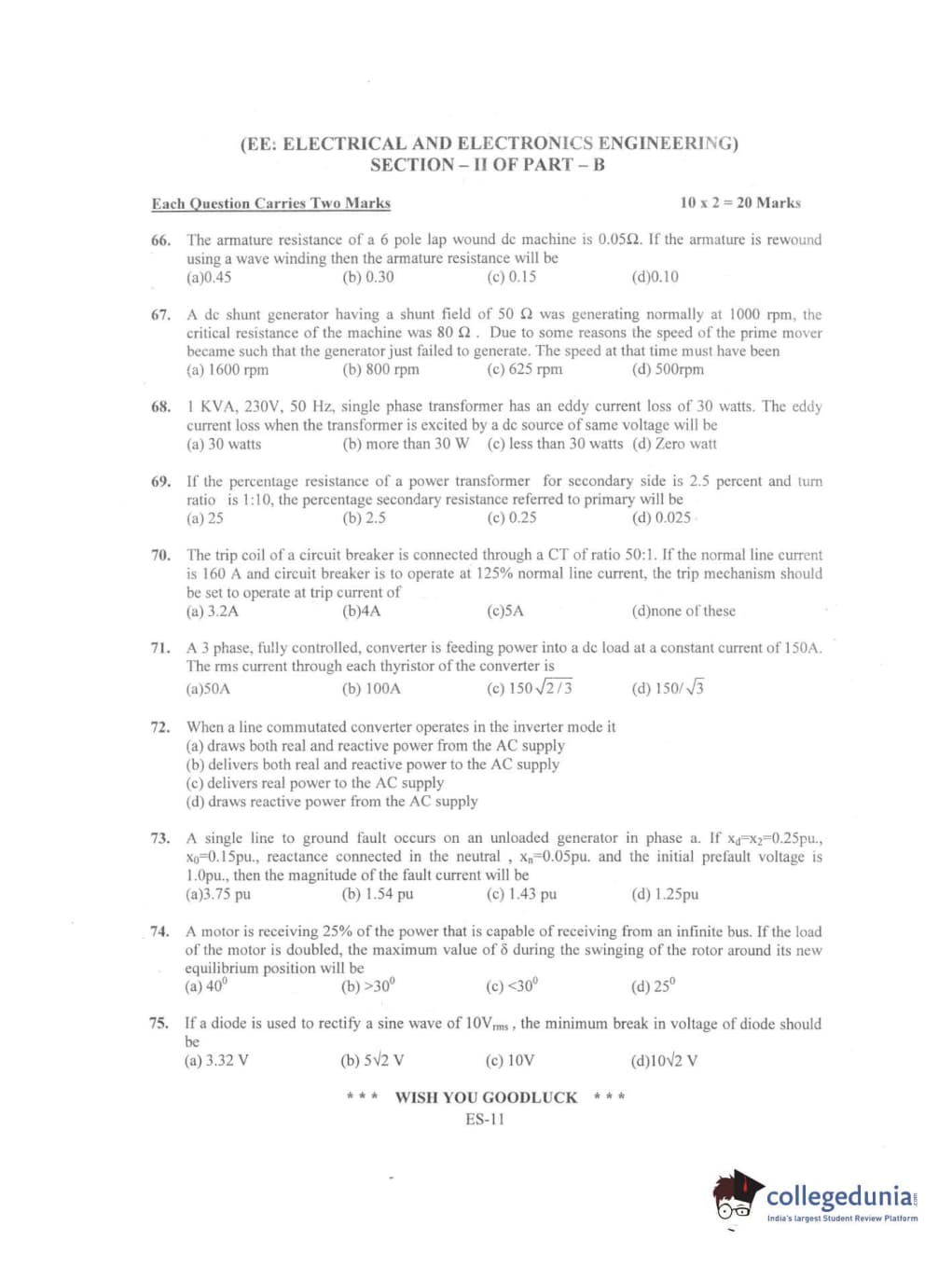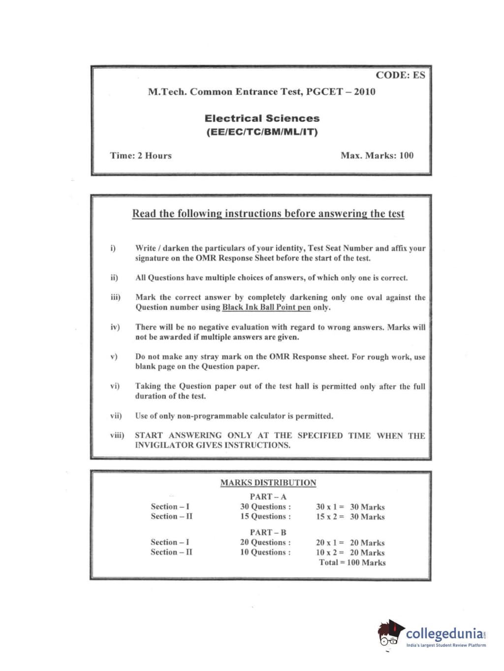 Karnataka PGCET 2010 Electrical Sciences Question paper with answer key pdf is available for download. The exam was successfully organized by Karnataka Examinations Authority (KEA). The question paper comprised a total of 75 questions.