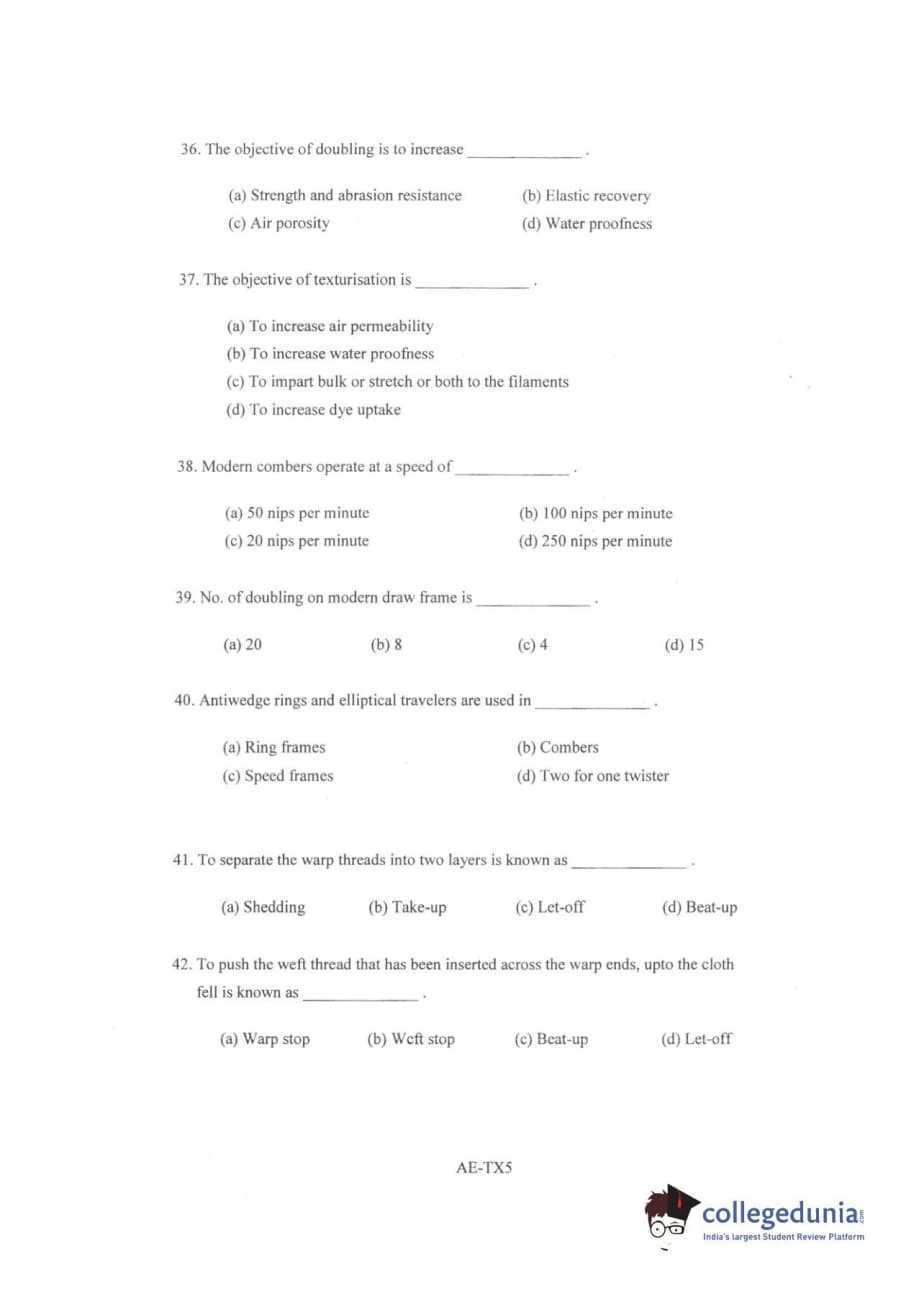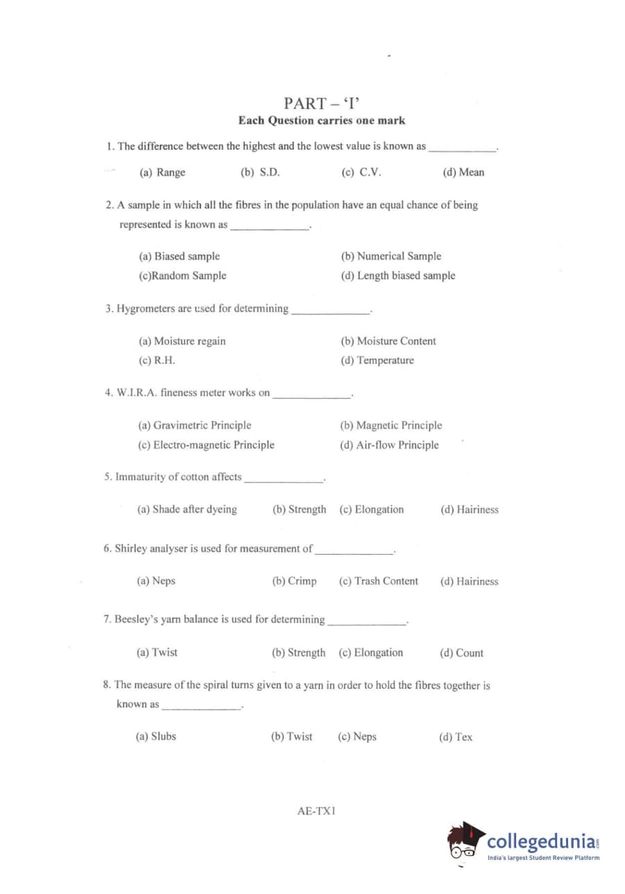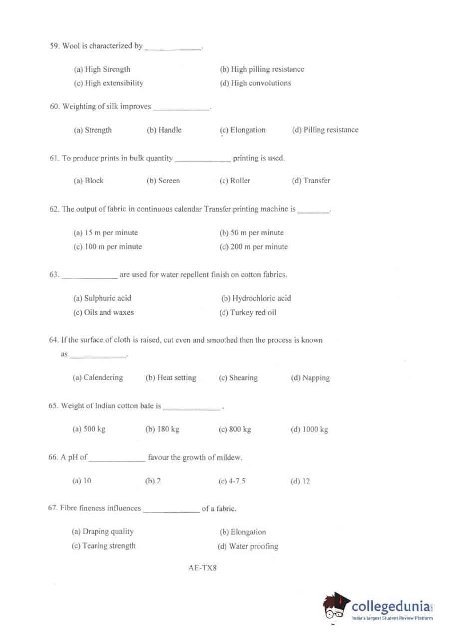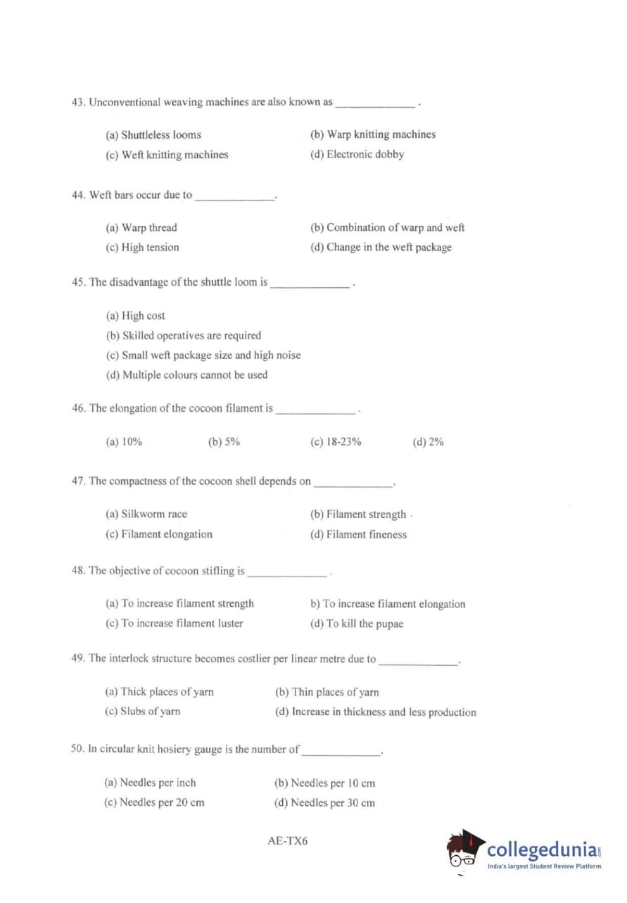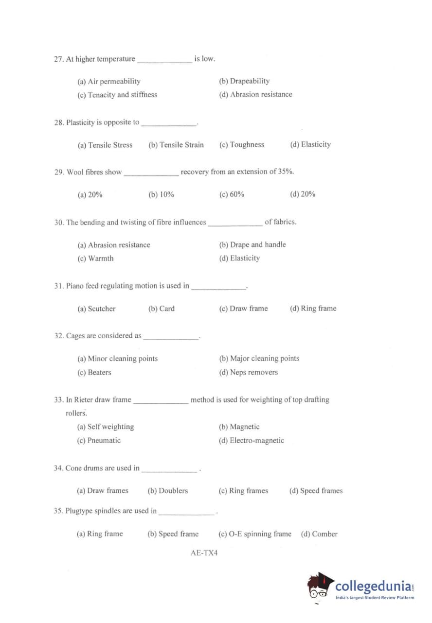 Karnataka PGCET 2010 Textile Technology Question paper with answer key pdf is available for download. The exam was successfully organized by Karnataka Examinations Authority (KEA). The question paper comprised a total of 75 questions.