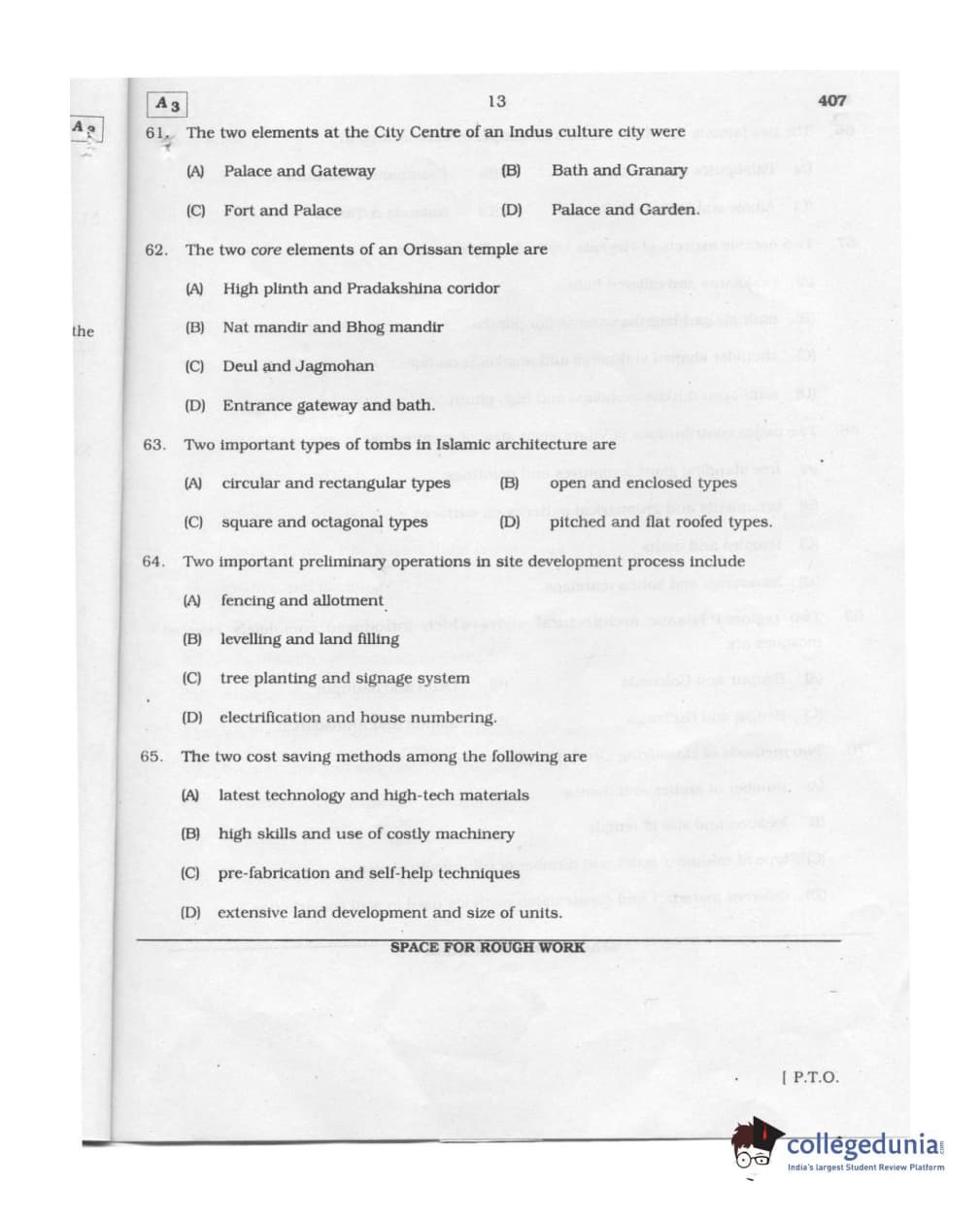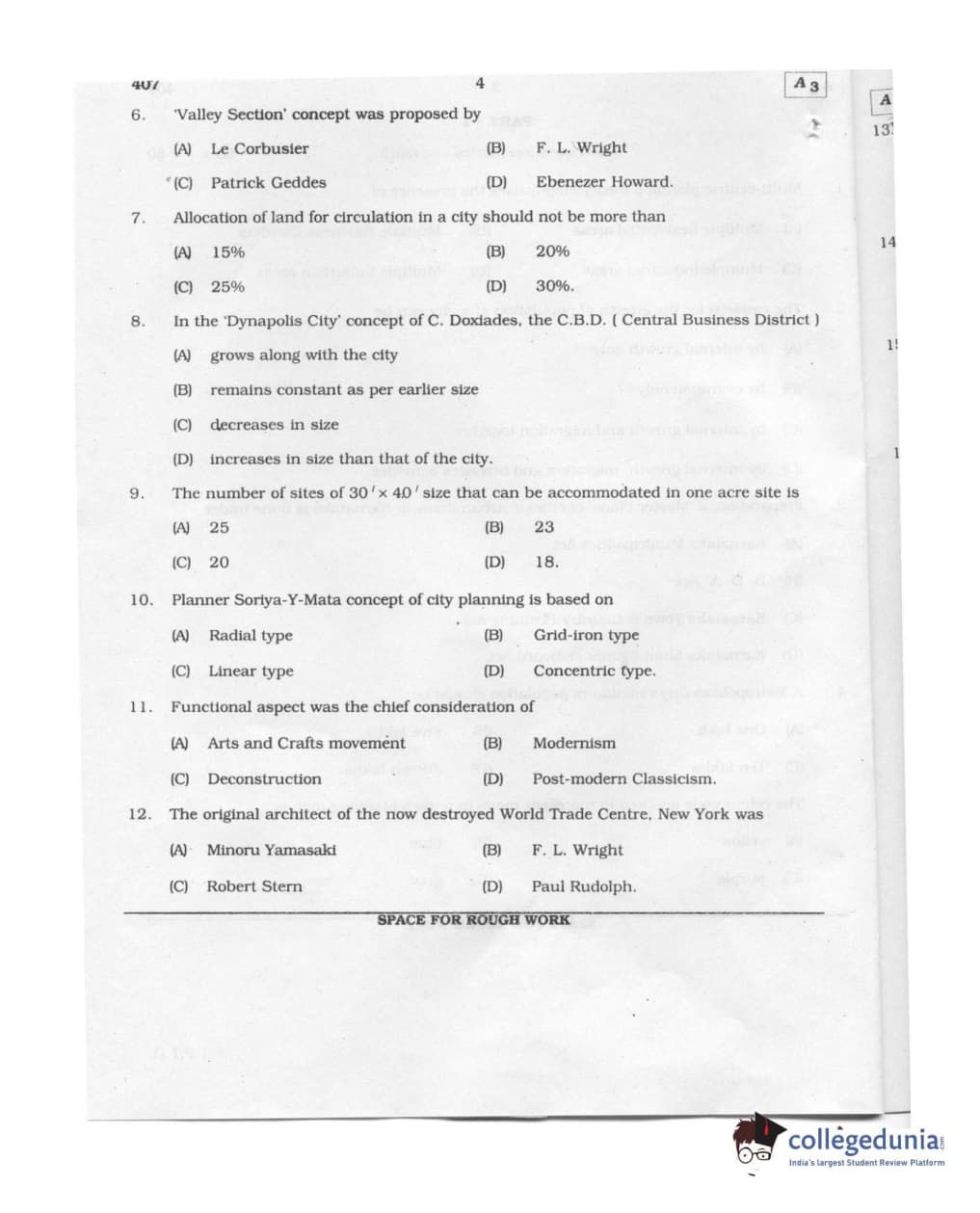 Karnataka PGCET 2011 Architecture Question Paper with Answer Key PDFs (August 6- Morning Session)
