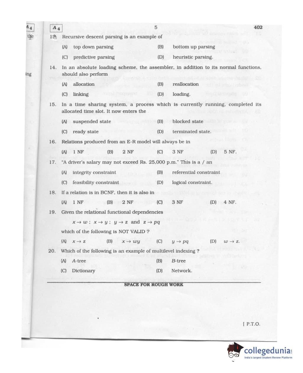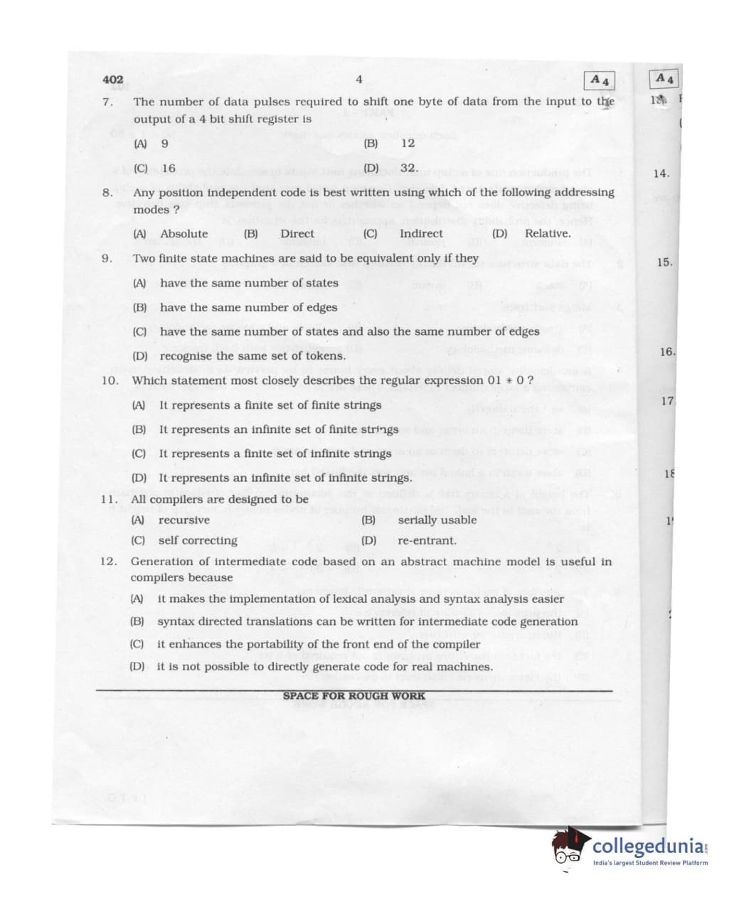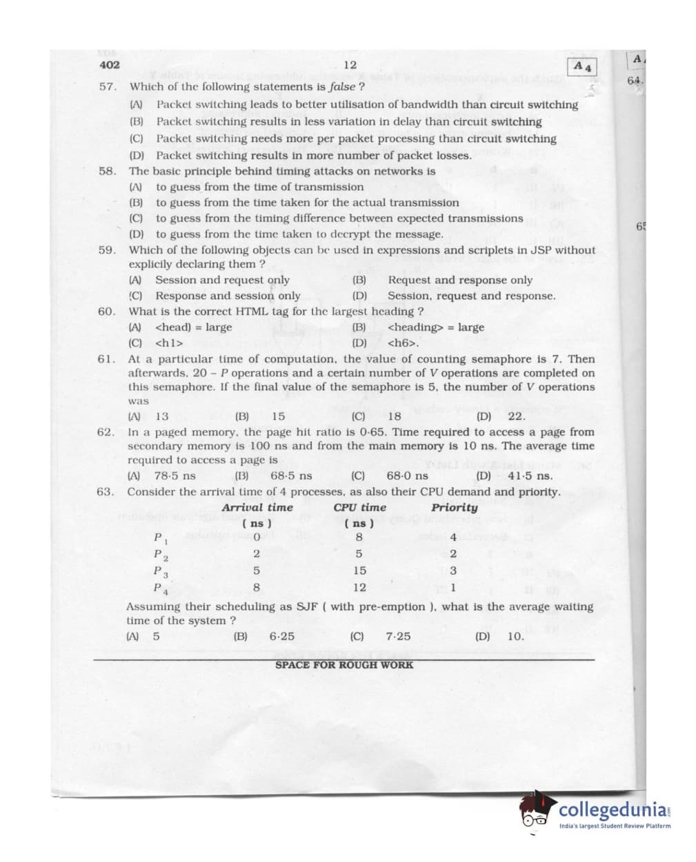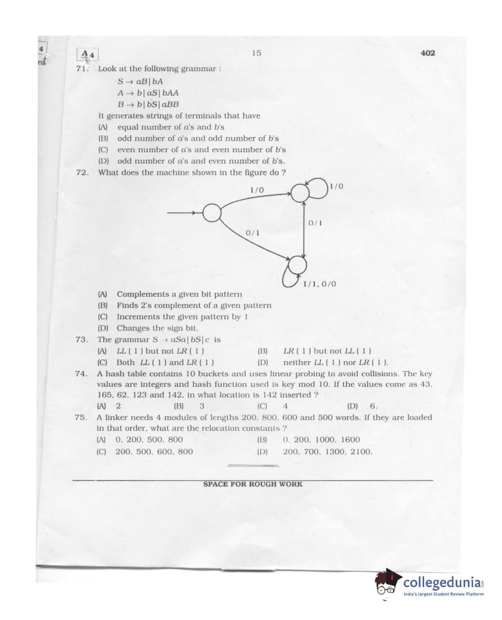 Karnataka PGCET 2011 Computer Science and Engineering Question paper with answer key pdf conducted on August 6, 2011 from for A-4 is available for download. The exam was successfully organized by Karnataka Examinations Authority (KEA). The question paper comprised a total of 75 questions.